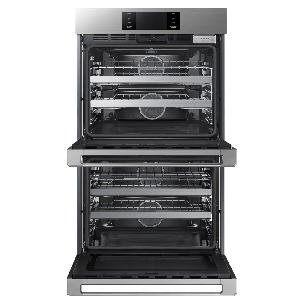 Doublez le plaisir avec la puissance et la flexibilité. Le four mural double combine la convection pure avec la puissance d'un rôtissage et d'une cuisson à la vapeur superbes, plus sains et meilleurs. Avec la capacité de gérer des plats de toutes tailles, vous ne manquerez jamais d'espace ni d'imagination.