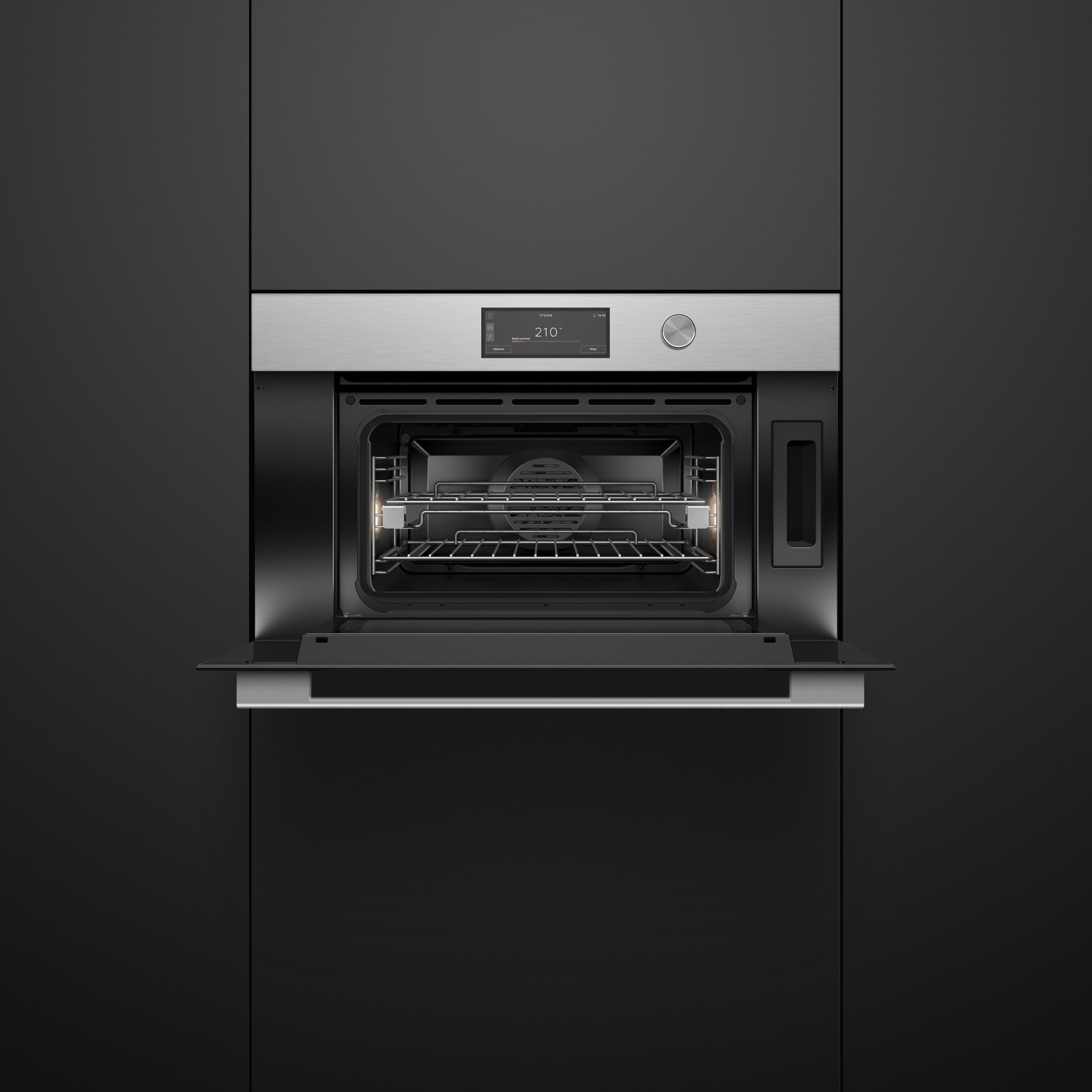 Chaque détail de nos appareils de style contemporain a été conçu avec une précision méticuleuse. Avec leur finition argent brossé, leur poignée ronde et leur écran tactile intuitif de 6,8 pouces, tous les éléments s'harmonisent parfaitement. Créez la cuisine de vos rêves grâce à notre gamme de fours et accessoires, pour un rendu homogène et élégant, installés côte à côte ou superposés – avec un jeu minimal de 1,5 mm. L'alliance parfaite du style et de la précision pour votre cuisine.