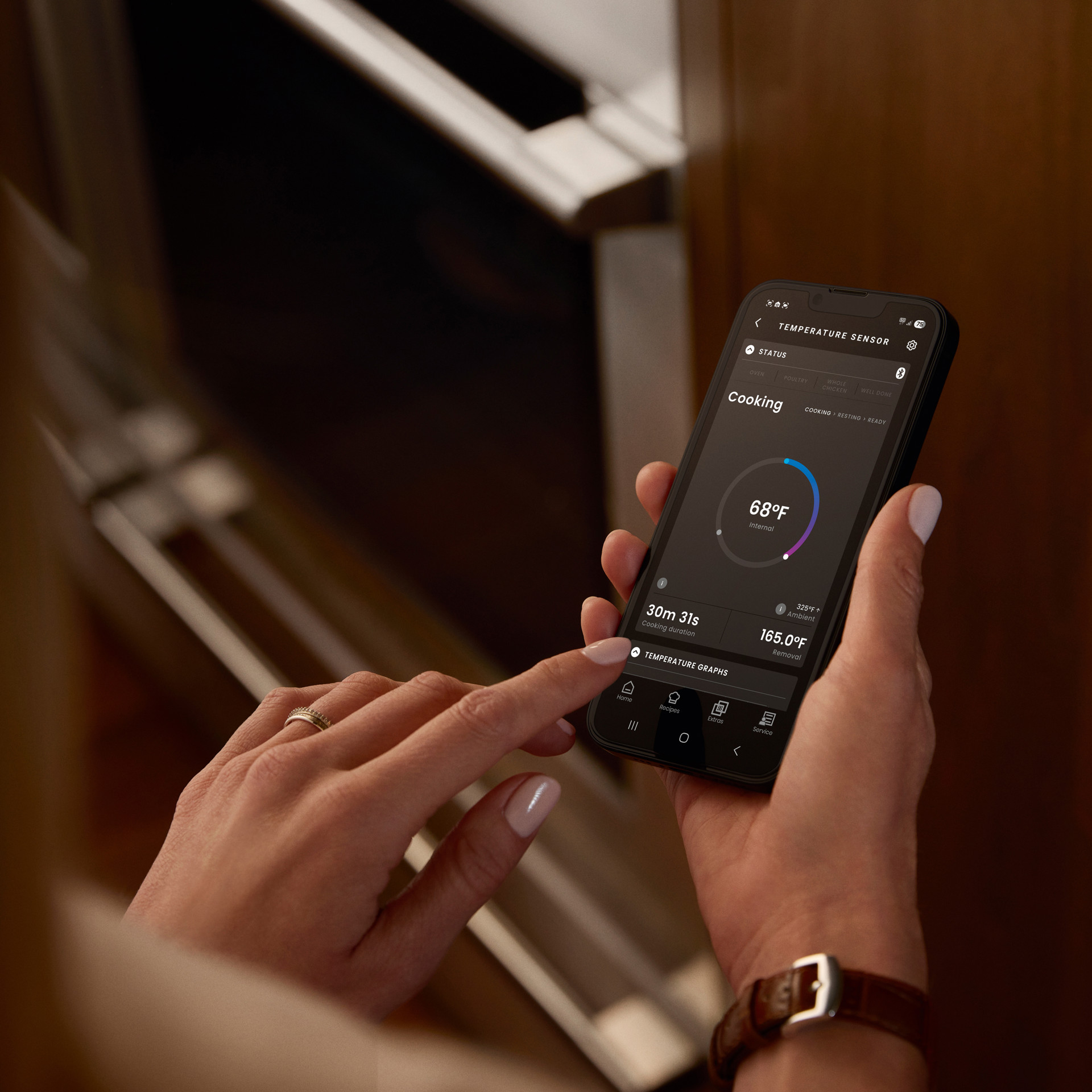Que vous souhaitiez cuire du riz à la vapeur, du poulet à la friteuse à air chaud ou de l'agneau sous vide, chacune de nos méthodes de cuisson précises a été soigneusement calibrée avec une combinaison optimale de chaleur, de température et d'humidité pour préserver la texture, conserver les nutriments et sublimer les saveurs. Grâce aux instructions d'utilisation du capteur de température, vous maîtrisez parfaitement la température de chaque plat.
