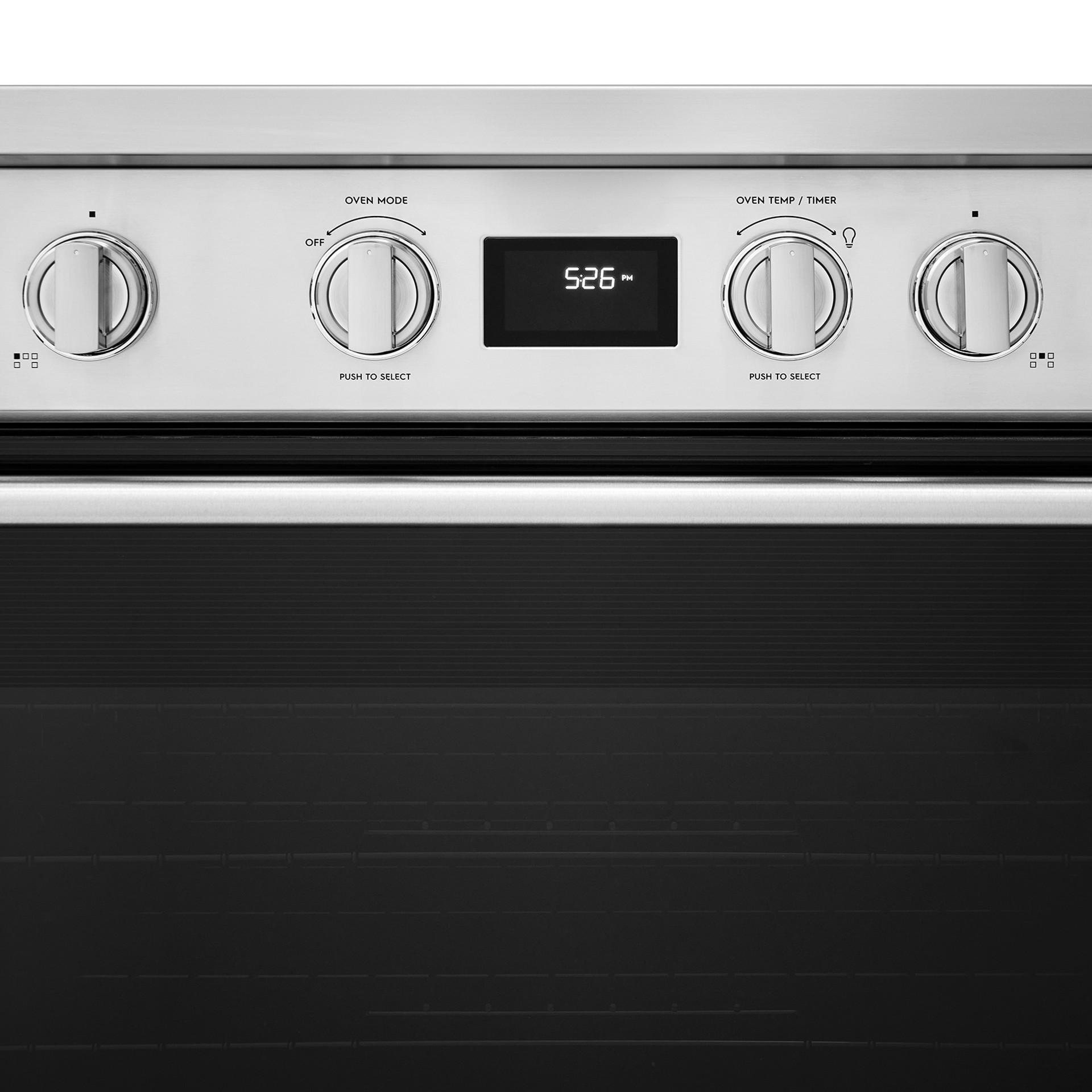 Des commandes frontales d'un bord à l'autre avec des boutons robustes et le verre à rayures emblématique d'Electrolux donnent à cette cuisinière un design élégant qui en fait le point central de votre cuisine.
