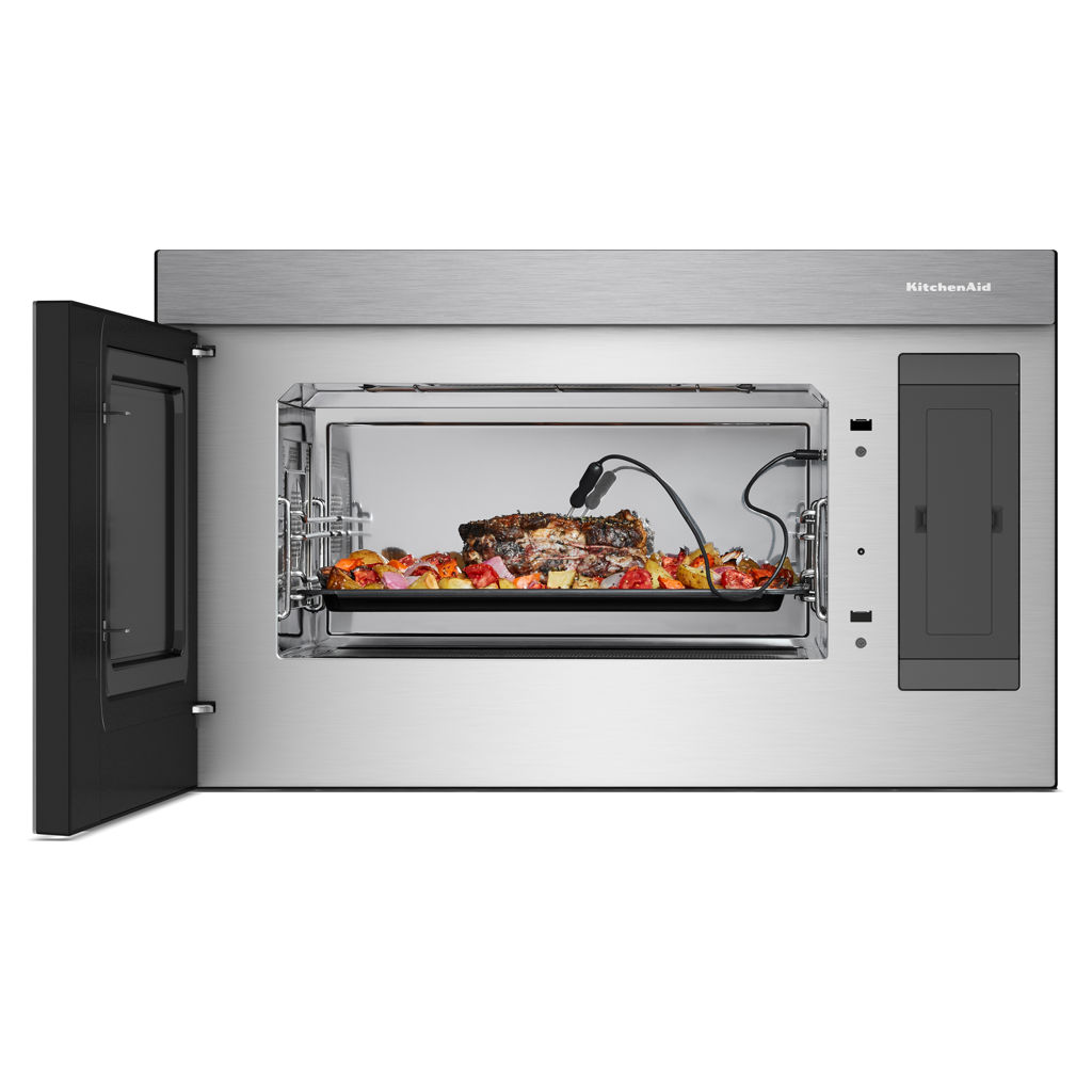 Gardez le contrôle sur chaque étape de la cuisson. Préchauffez, surveillez et contrôlez le four à micro-ondes à distance à l’aide de l’application KitchenAid™* ou de simples commandes vocables par l’intermédiaire de votre appareil Google ou Alexa, ce qui vous laisse les mains libres pour créer.
