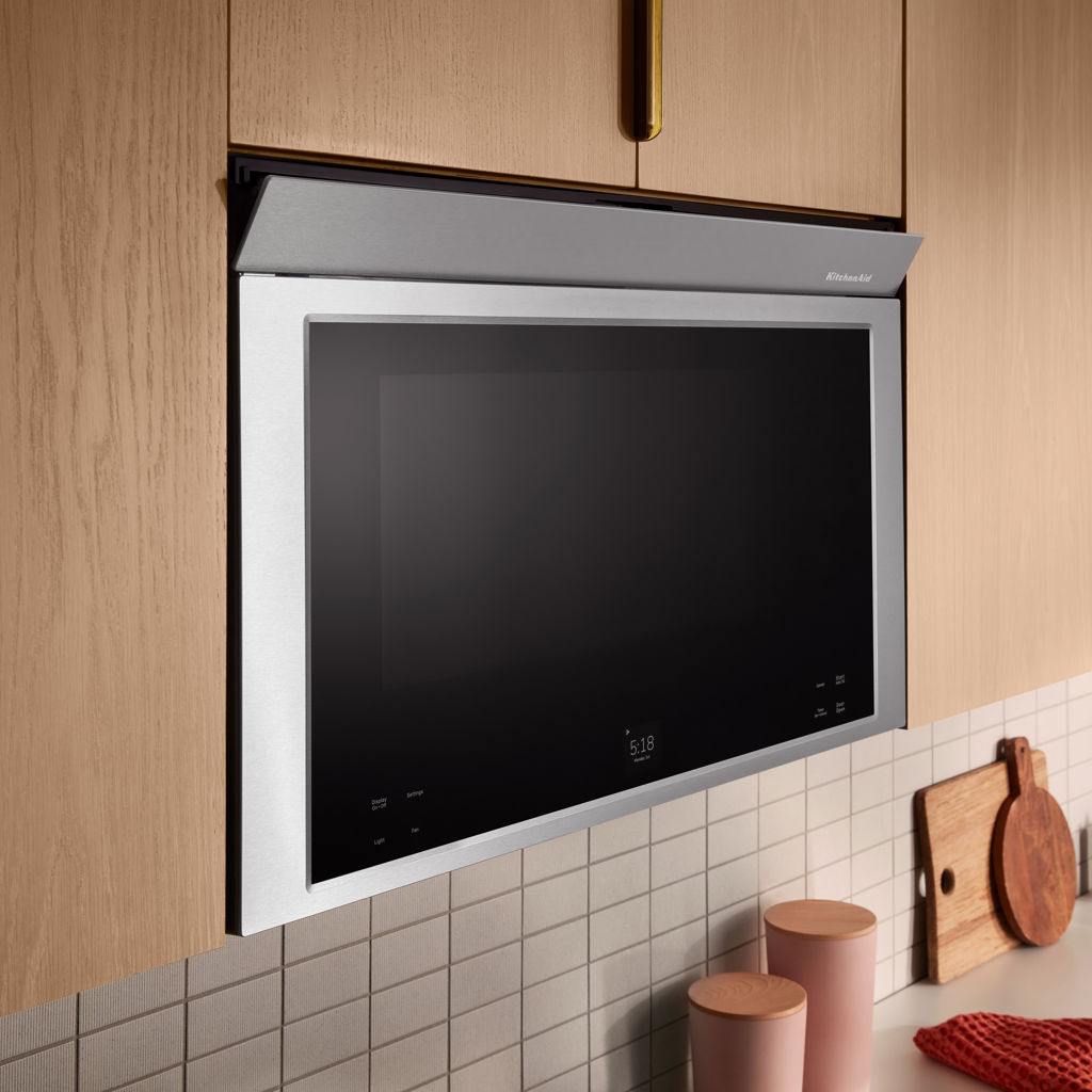 Procure une allure harmonieuse intégrée dans une découpe standard de 12 ¾ po de profondeur. Une fois refermée, la porte du four à micro-ondes s’aligne avec le devant des armoires avoisinantes, c’est donc votre cuisine qui ressort et non votre électroménager.