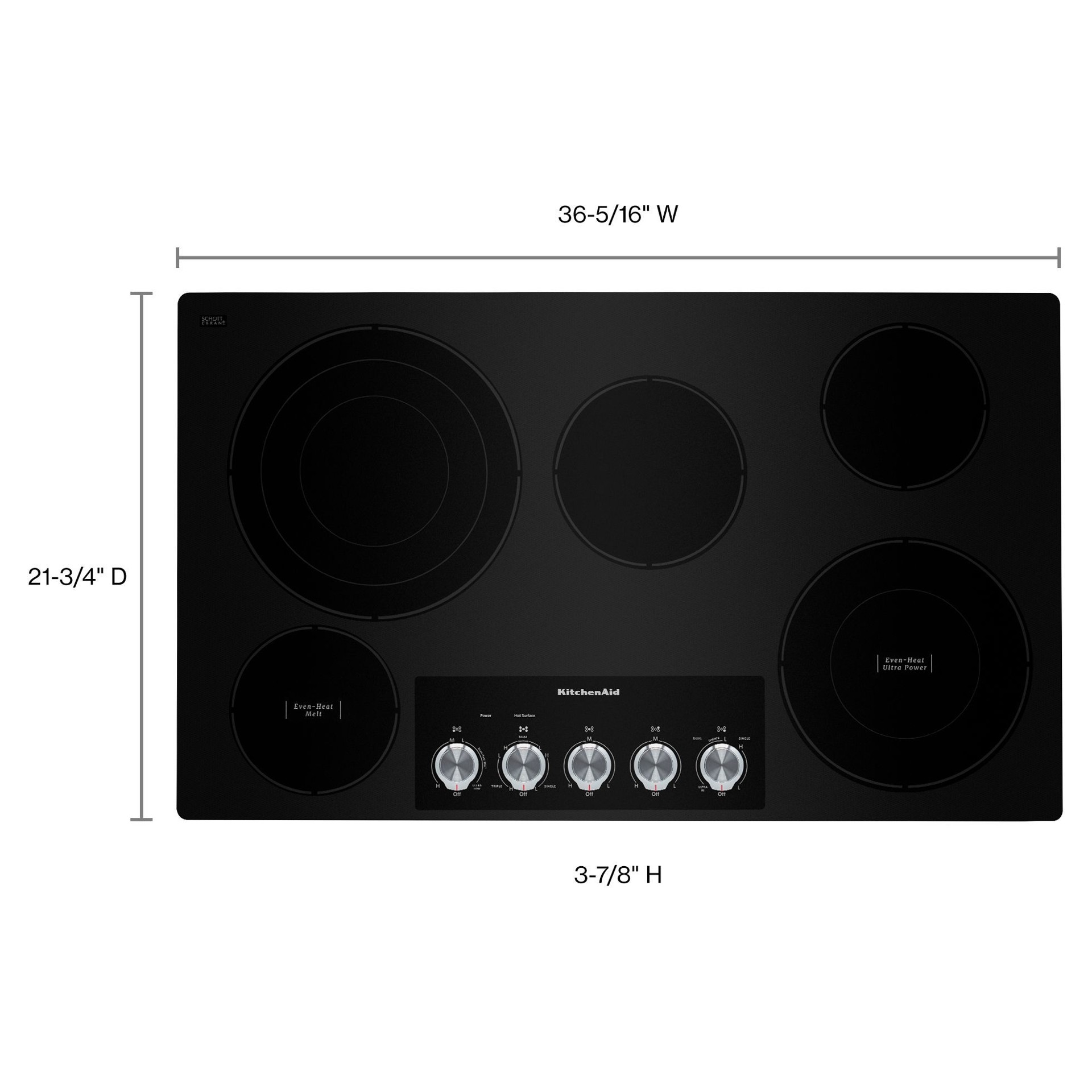 Cette table de cuisson électrique de 36" combine un style intemporel avec la performance de cinq éléments radiants, dont un élément Even-Heat™ Ultra Power™ de 10'' avec réglage Mijoter, un élément Even-Heat™ de 6'' avec réglage Fondre et un élément de 12" Élément rond à triple anneau de 12"/9''/6'' qui maximise votre flexibilité avec trois anneaux distincts qui permettent de sélectionner l'élément en fonction de la taille de l'ustensile de cuisine.