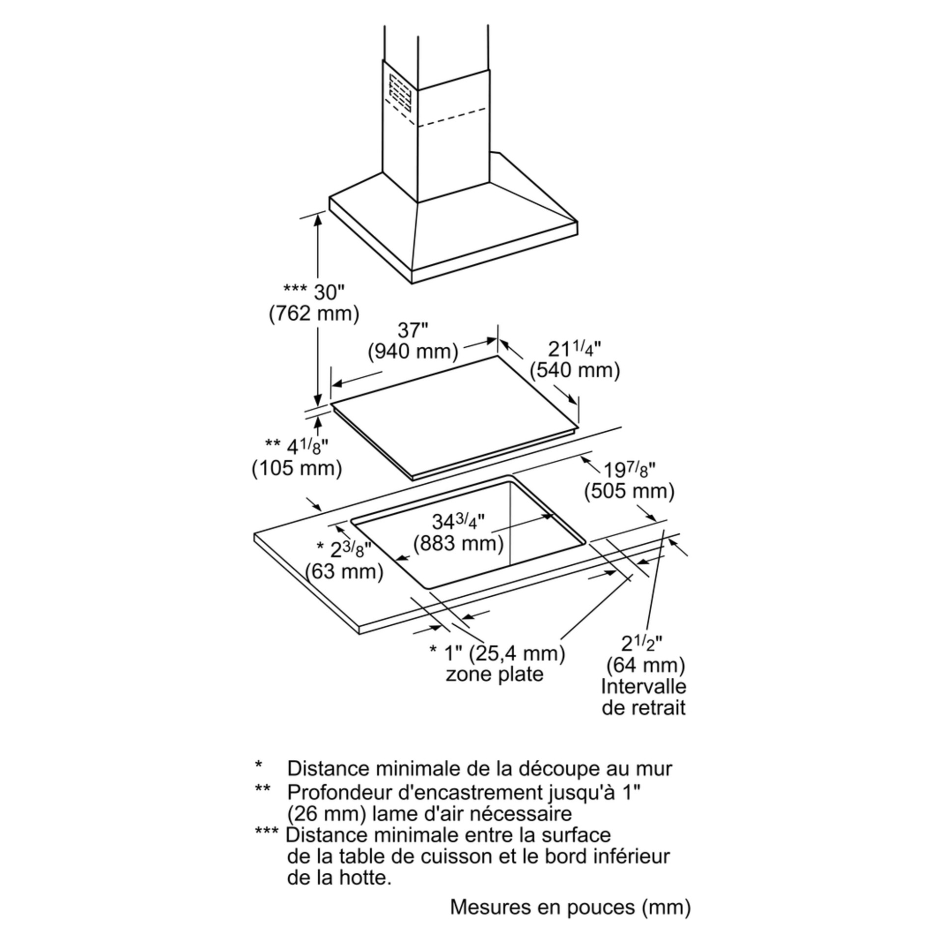 • Largeur de la plaque de cuisson : 36 po