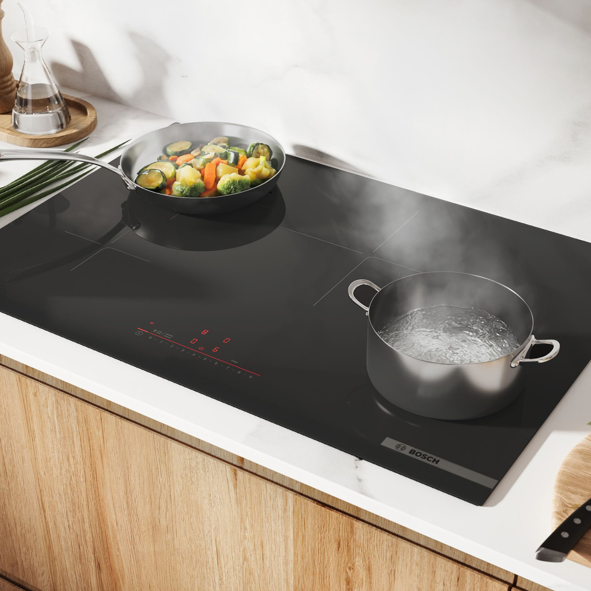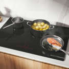 Les plaques à induction génèrent de la chaleur uniquement là où elle est nécessaire : au fond de la casserole. Qu’est-ce que cela signifie pour vous ? Plus de sécurité et plus de praticité. La température plus basse protège les petites et grandes mains des brûlures. De plus, une plaque à induction permet d’économiser en moyenne 20 % d’énergie par rapport à une plaque vitrocéramique, tout en faisant bouillir deux litres d’eau deux fois plus vite.