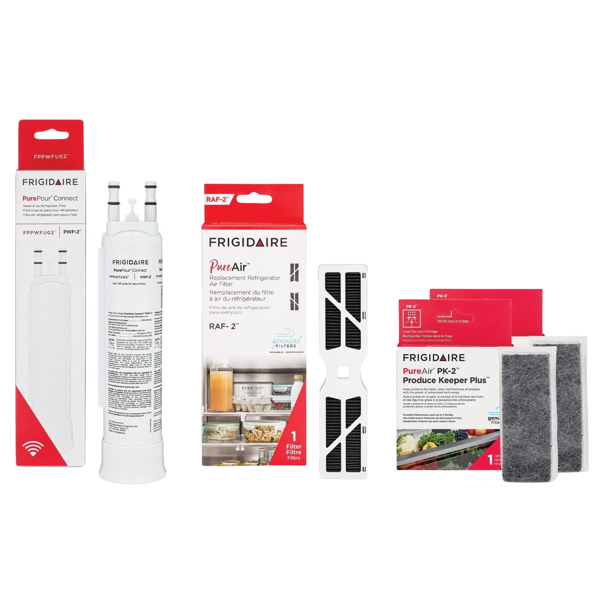 Ensemble combiné de filtres à eau et à air (FPPWFU02, FRGPAAF2 et (2) FRPAPK2RF avec Produce Keeper Plus)