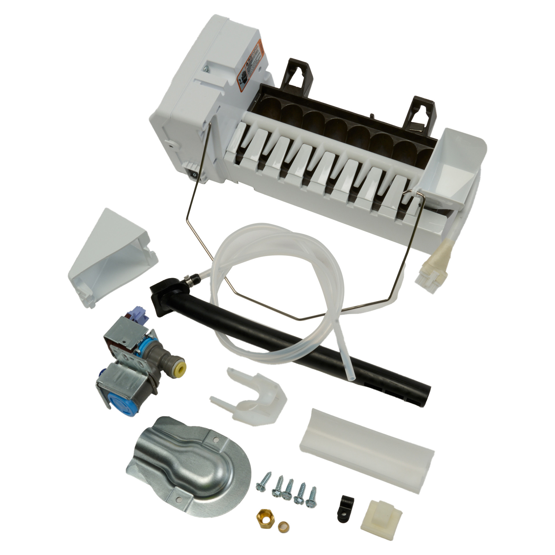 Ce kit de machine à glaçons comprend les éléments nécessaires pour ajouter une fonction de fabrication de glaçons à votre réfrigérateur actuel. Ce kit complet comprend (1) ensemble de machine à glaçons, (1) seau à glace, (1) harnais de cavalier ainsi que tout le matériel de montage et les instructions d'installation. Veuillez vérifier le manuel d'utilisation et d'entretien de votre appareil pour vous assurer qu'il est correct pour une utilisation avec votre appareil.