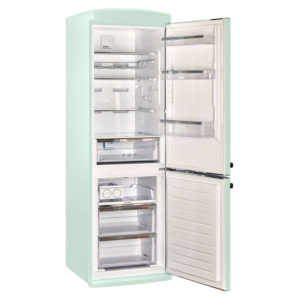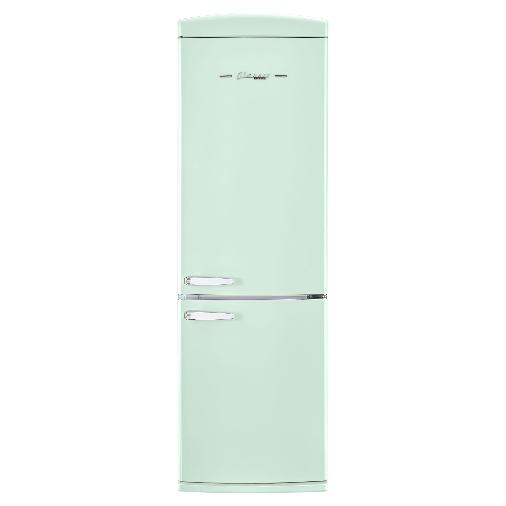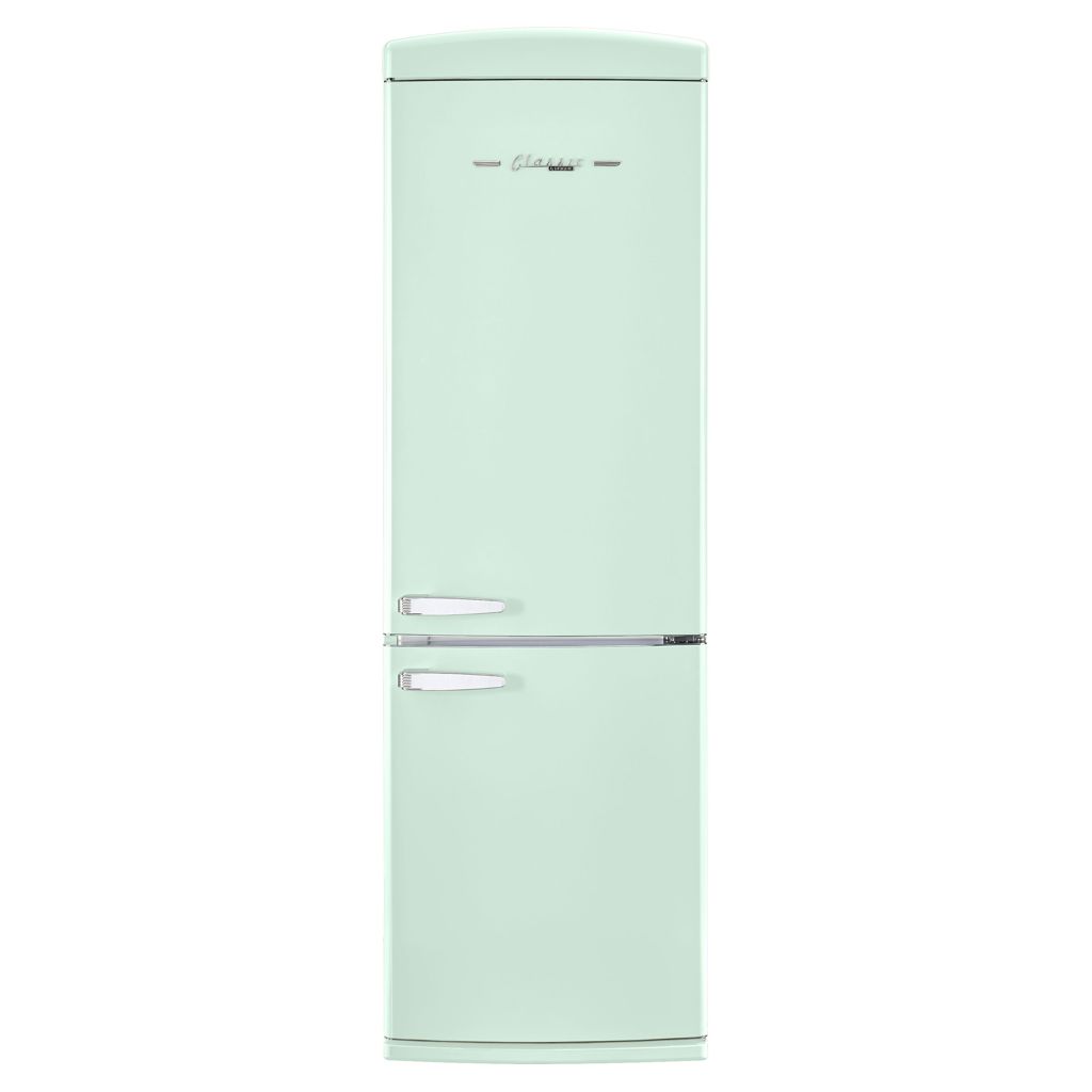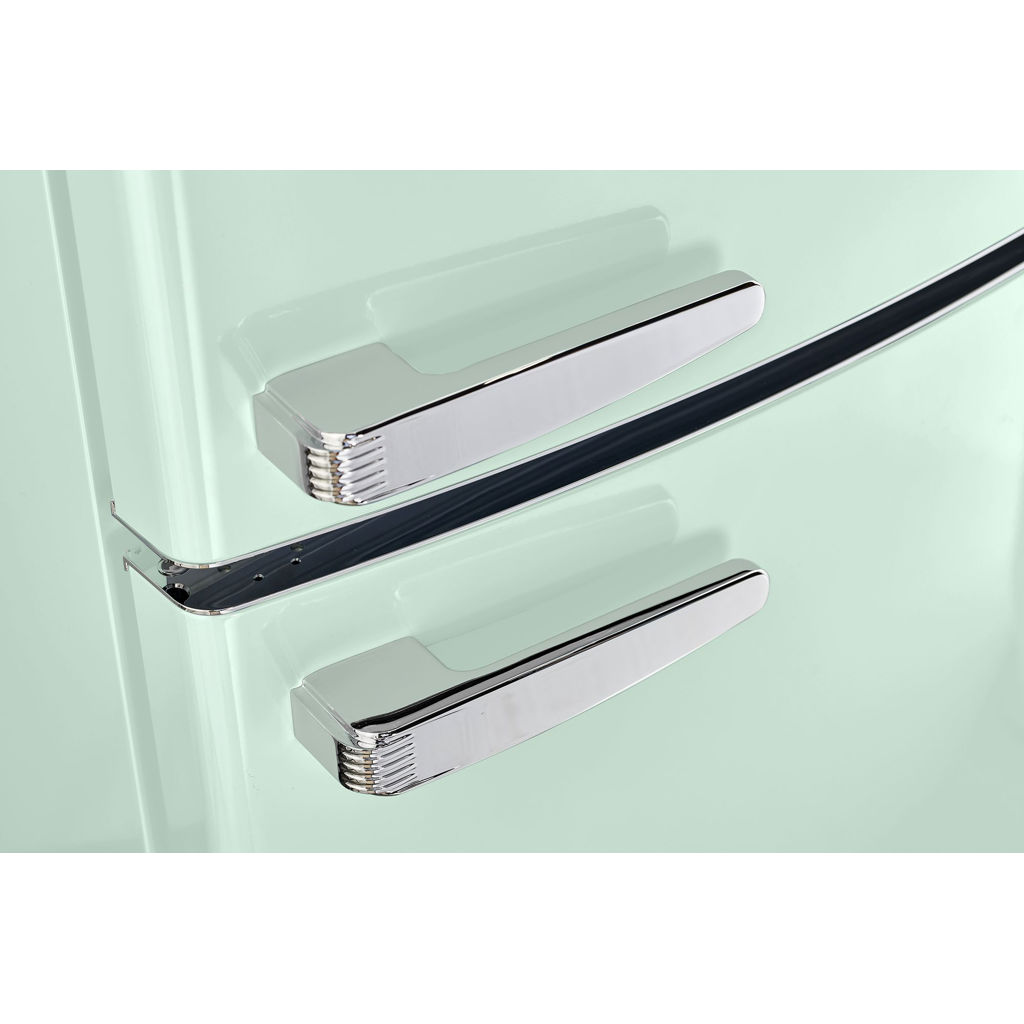 Le réfrigérateur à congélateur inférieur vous ramène au design rétro emblématique et aux accents chromés.