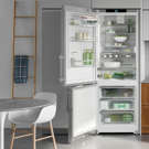 La technologie DuoCooling utilise deux circuits de réfrigération complètement séparés pour éviter le renouvellement de l’air entre les compartiments réfrigérateur et congélateur. Cela protège les aliments dans le compartiment réfrigérateur de l’air sec du compartiment congélateur. De plus, les odeurs ne se mélangent pas et les aliments conservent leur propre arôme. Il n’y a pas de renouvellement d’air entre le réfrigérateur et le congélateur, le transfert d’odeurs est évité et les aliments stockés ne se dessèchent pas.