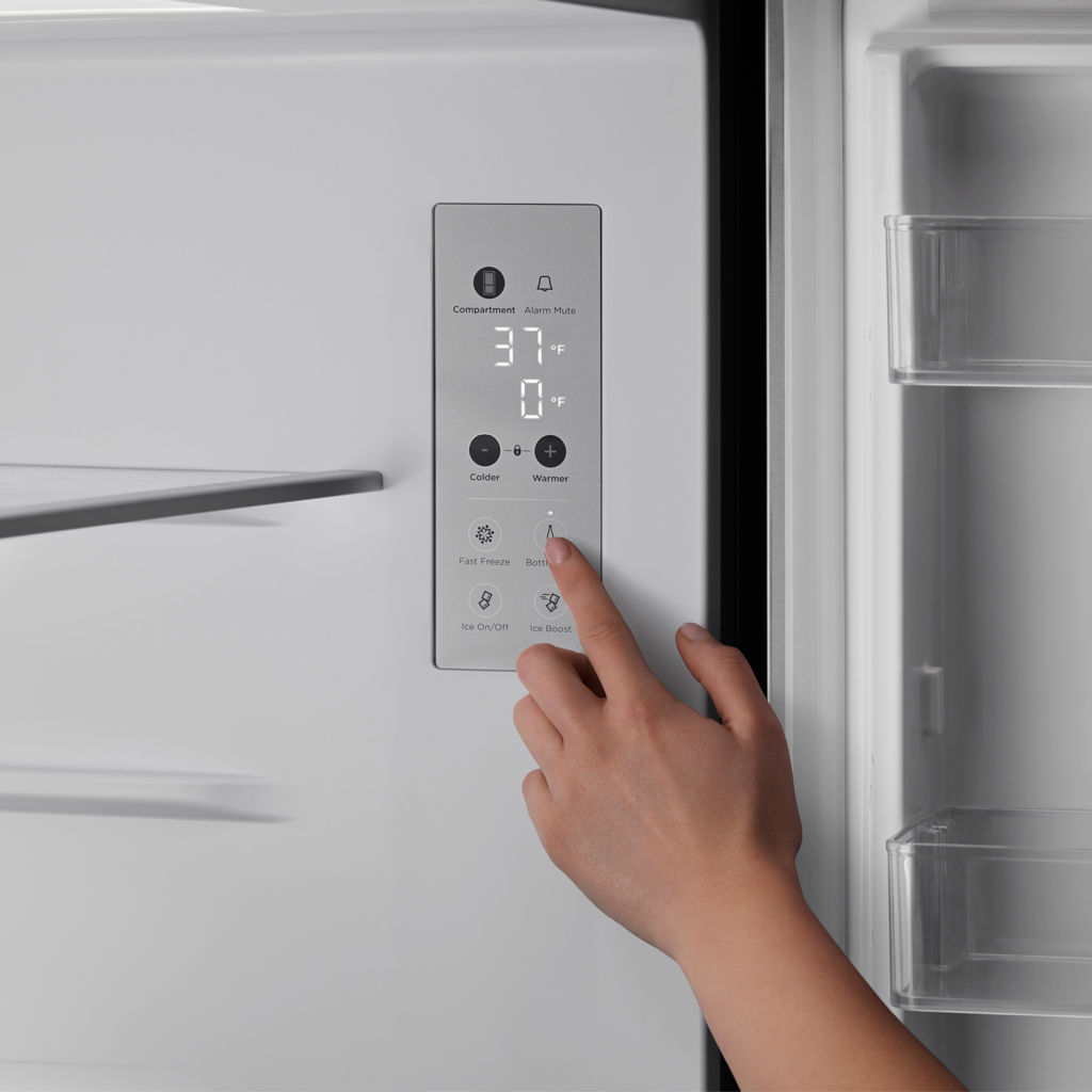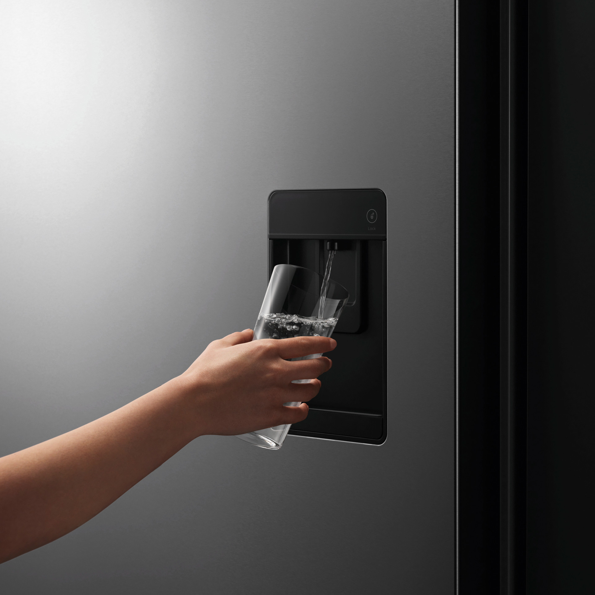 Conçu pour un usage quotidien, ce réfrigérateur-congélateur allie style contemporain et espace de rangement généreux, avec en plus la commodité d'une distribution d'eau fraîche sur la porte et de glaçons à la demande dans le congélateur.