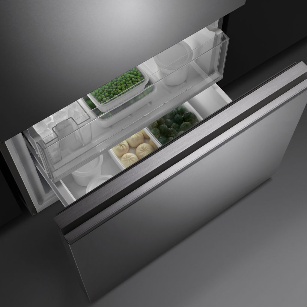Les poignées encastrées et les portes plates créent un style épuré et moderne qui s'intègre harmonieusement à tous les styles de cuisine. La finition en acier inoxydable s'accorde avec une grande variété de cuisines.