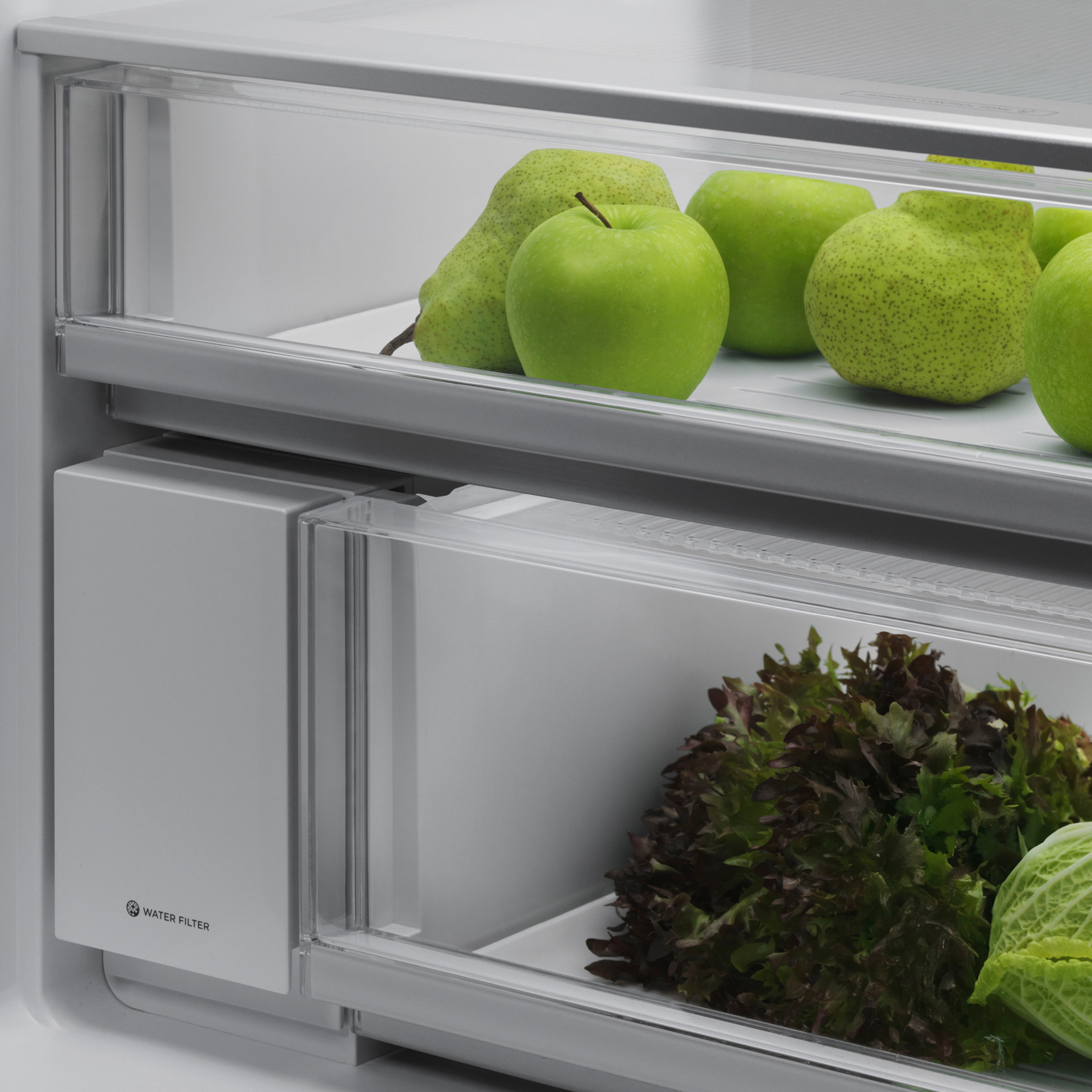 Conçu pour ceux qui privilégient les aliments frais, ce réfrigérateur dispose d'une répartition réfrigérateur/congélateur 70/30, offrant ainsi un espace réfrigérateur supplémentaire et un tiroir à humidité contrôlée. Idéal pour conserver les fruits et légumes frais ou séparer charcuterie et viandes, il permet à chaque chose d'avoir sa place.