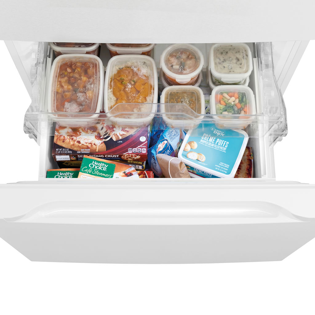 Le congélateur inférieur de 76 cm de largeur s'adapte facilement aux cuisines étroites et petites.