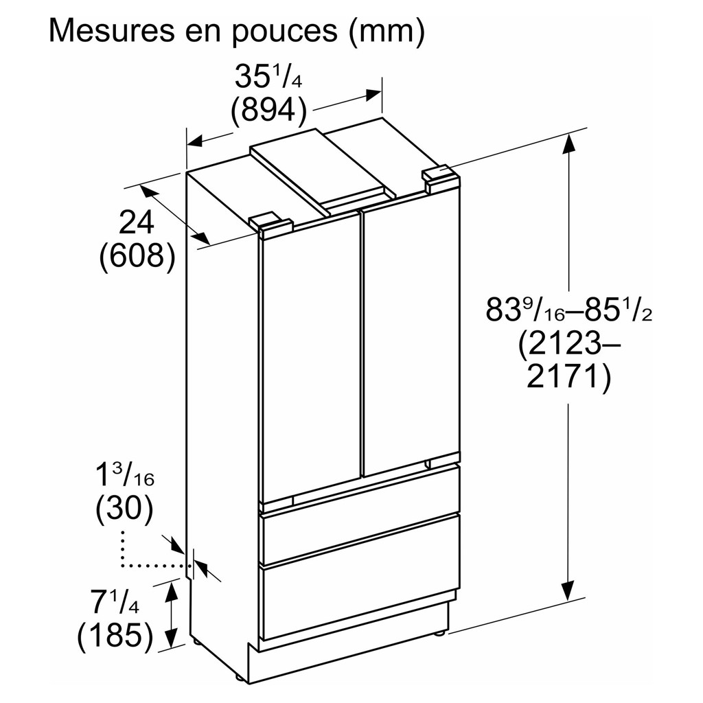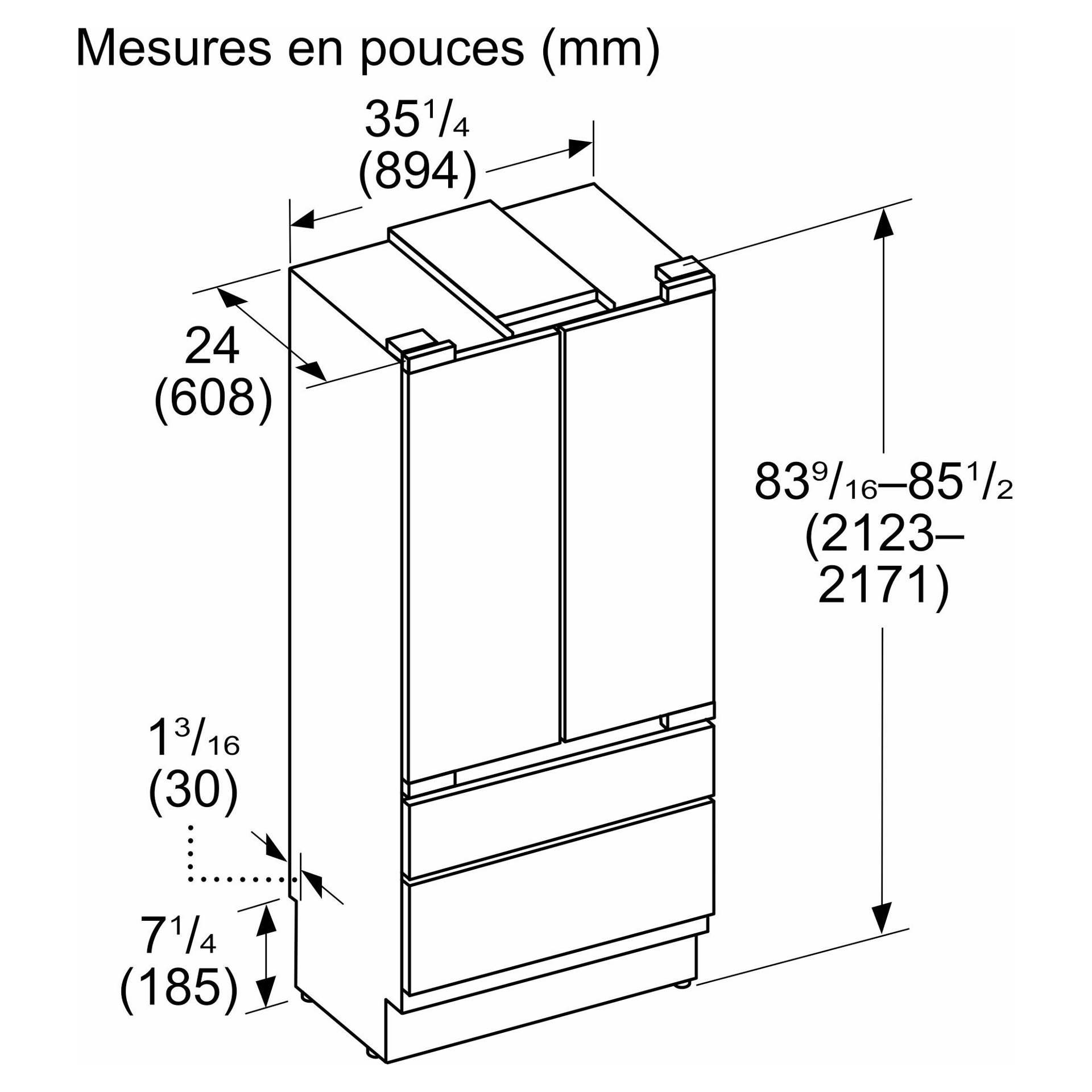 Réfrigérateur encastré à quadruple porte, à portes française personnalisable 36 po