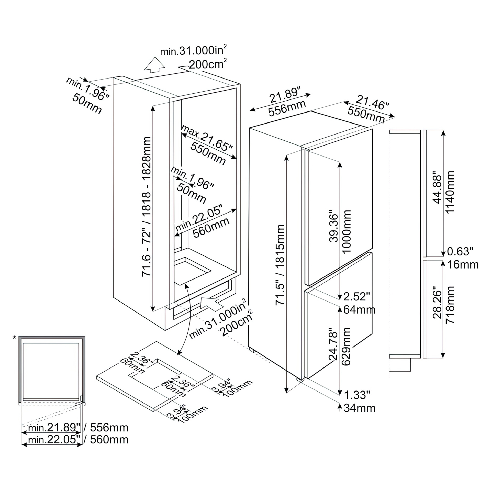 Réfrigérateur  encastré de 22 pouces avec capacité de 9.2 pi3