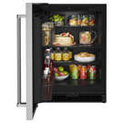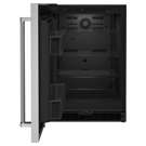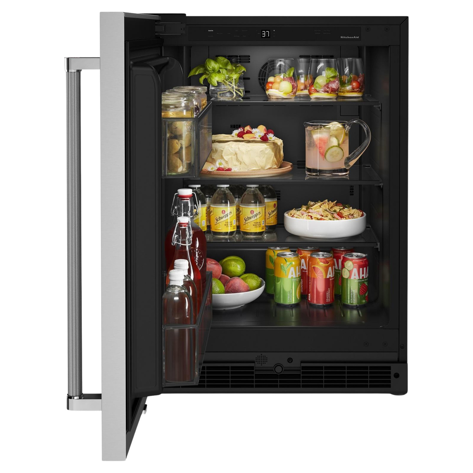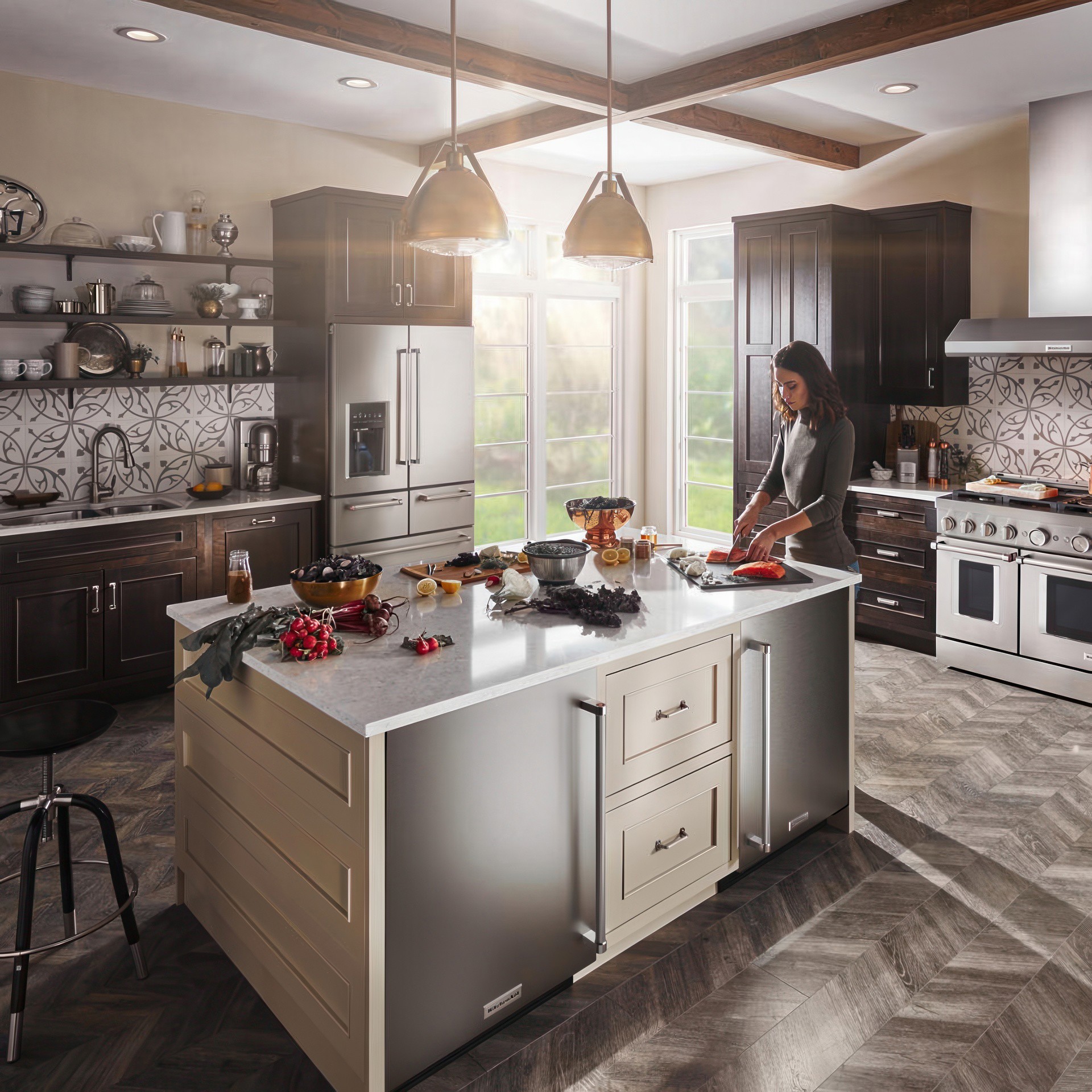 Offre un aspect intégré dans un meuble bas standard de 24 pouces, pour que votre style se démarque, et non l'appareil. Des charnières dissimulées permettent à la porte du réfrigérateur de s'aligner parfaitement avec les façades des meubles environnants lorsqu'elle est fermée, tout en s'ouvrant facilement à 115 degrés.