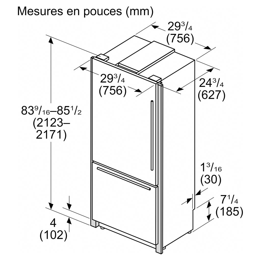 • Largeur : 30 po