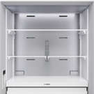 Compartiment congélateur spacieux et entièrement extensible, avec rails coulissants synchronisés et tiroirs métalliques à trois niveaux pour une organisation optimale. Capacité totale : 5,6 pi³.