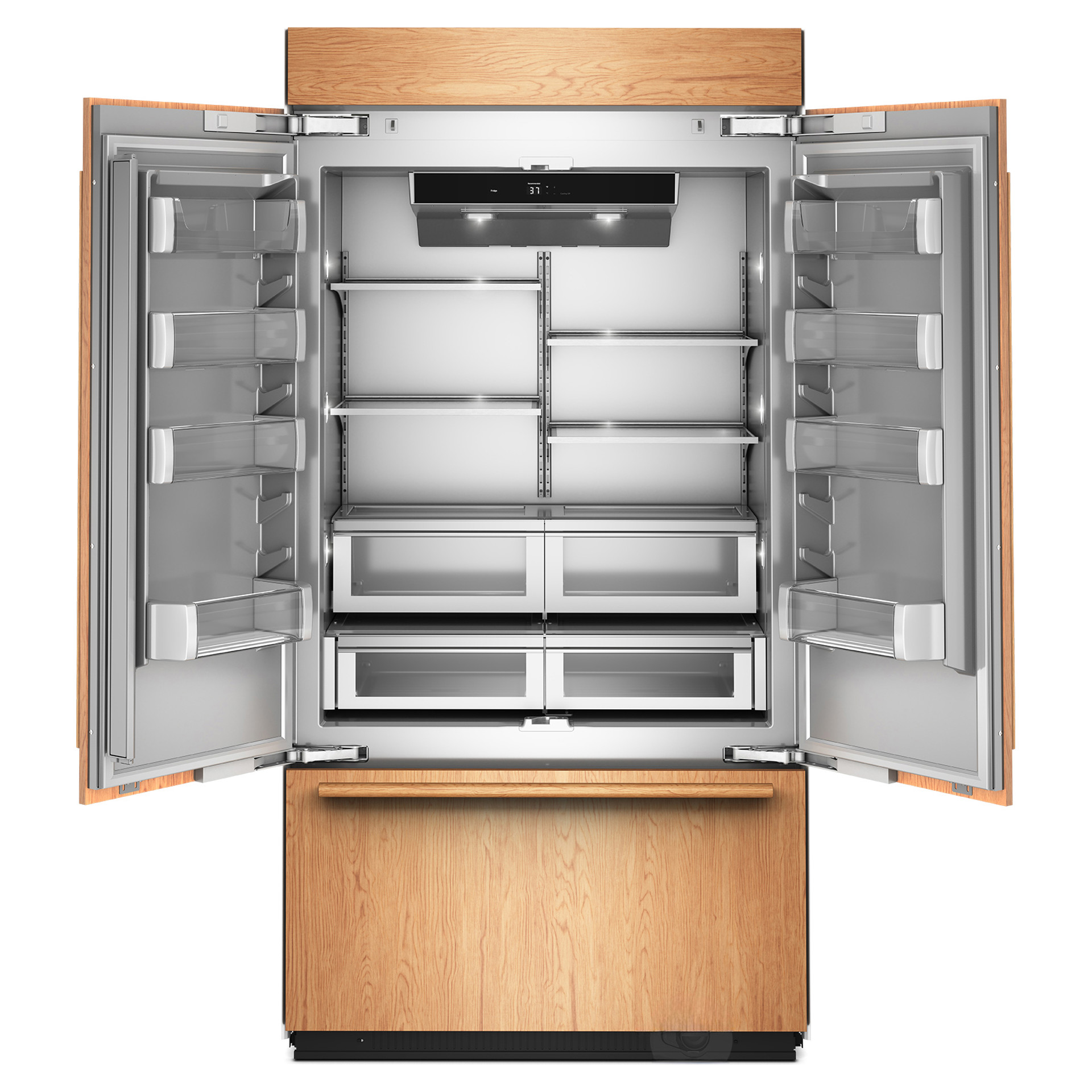 Ce réfrigérateur encastrable à portes françaises et congélateur en bas rehausse votre style grâce à son panneau extérieur au design élégant.