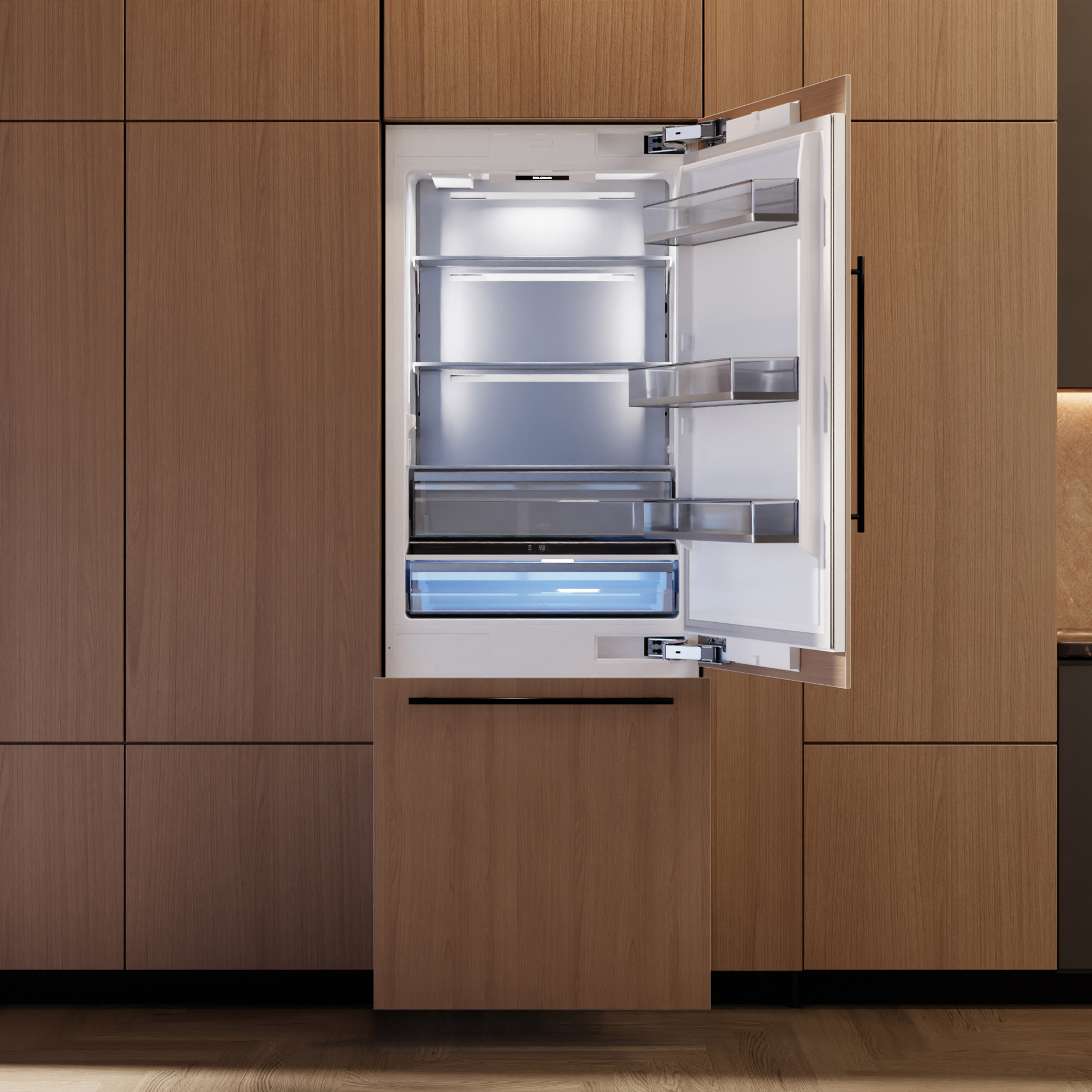 Alliant design intégré et performance moderne, ce réfrigérateur à congélateur en bas est conçu pour s’harmoniser parfaitement à votre cuisine. Prêt à recevoir des panneaux de finition, il offre une installation affleurante élégante et discrète.