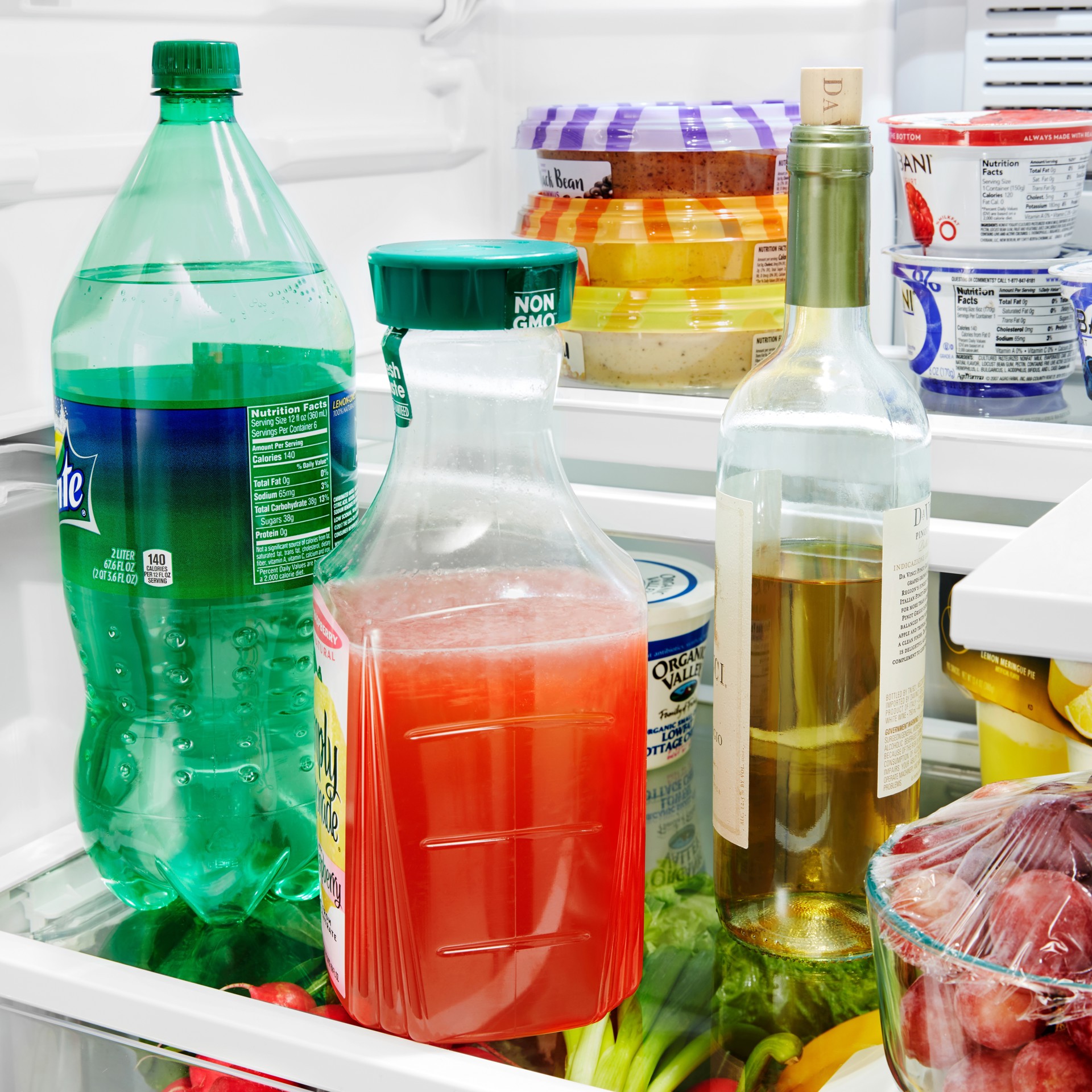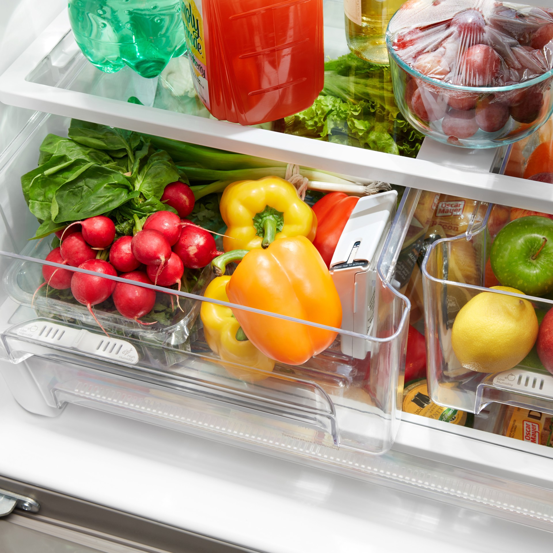 Pour accommoder les longs articles. Le devant se règle et coulisse hors de portée, créant de l'espace pour les articles tels que les bouteilles de 2 litres ou les grands bols de salade.