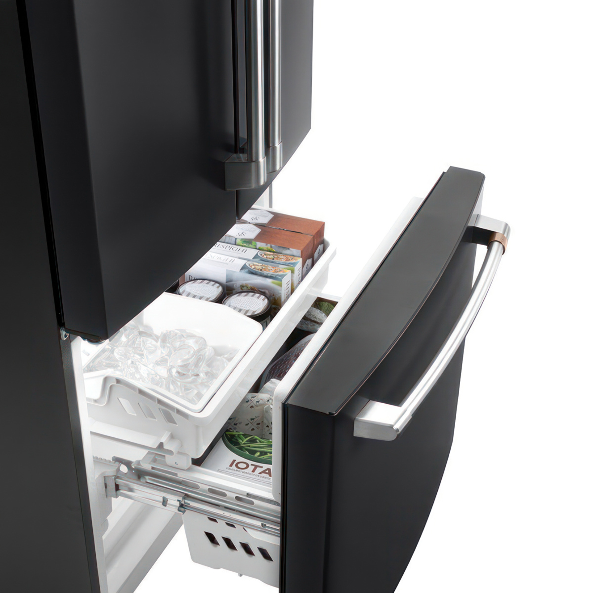 Café ™ 18,6 pi³ Réfrigérateur à porte française à profondeur de comptoir noir mat