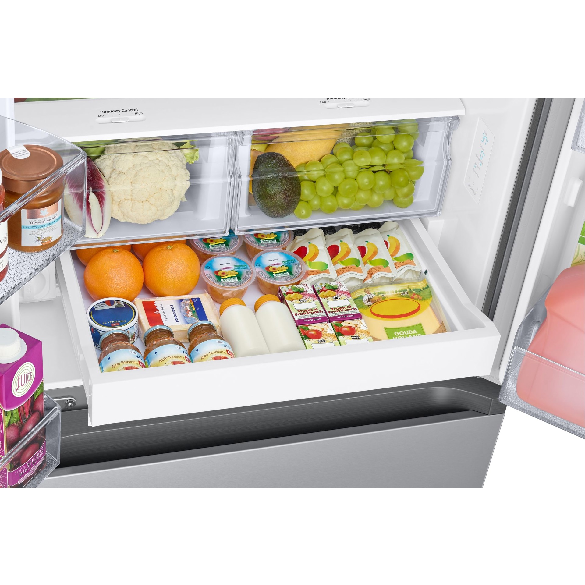 Assurez-vous que tous vos aliments sont correctement refroidis. Le refroidissement intégral refroidit uniformément chaque compartiment d'un coin à l'autre. Il vérifie continuellement la température et fait circuler l'air frais à travers des évents placés stratégiquement. Ainsi, les aliments sont conservés à la température optimale et refroidissent uniformément à l'intérieur.