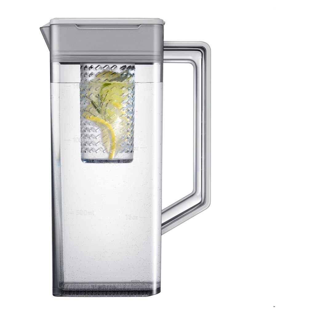 Un pichet sans BPA2 à remplissage automatique situé dans la porte du réfrigérateur se remplit automatiquement pour vous permettre d’accéder facilement à de l’eau fraîche et aromatisée.