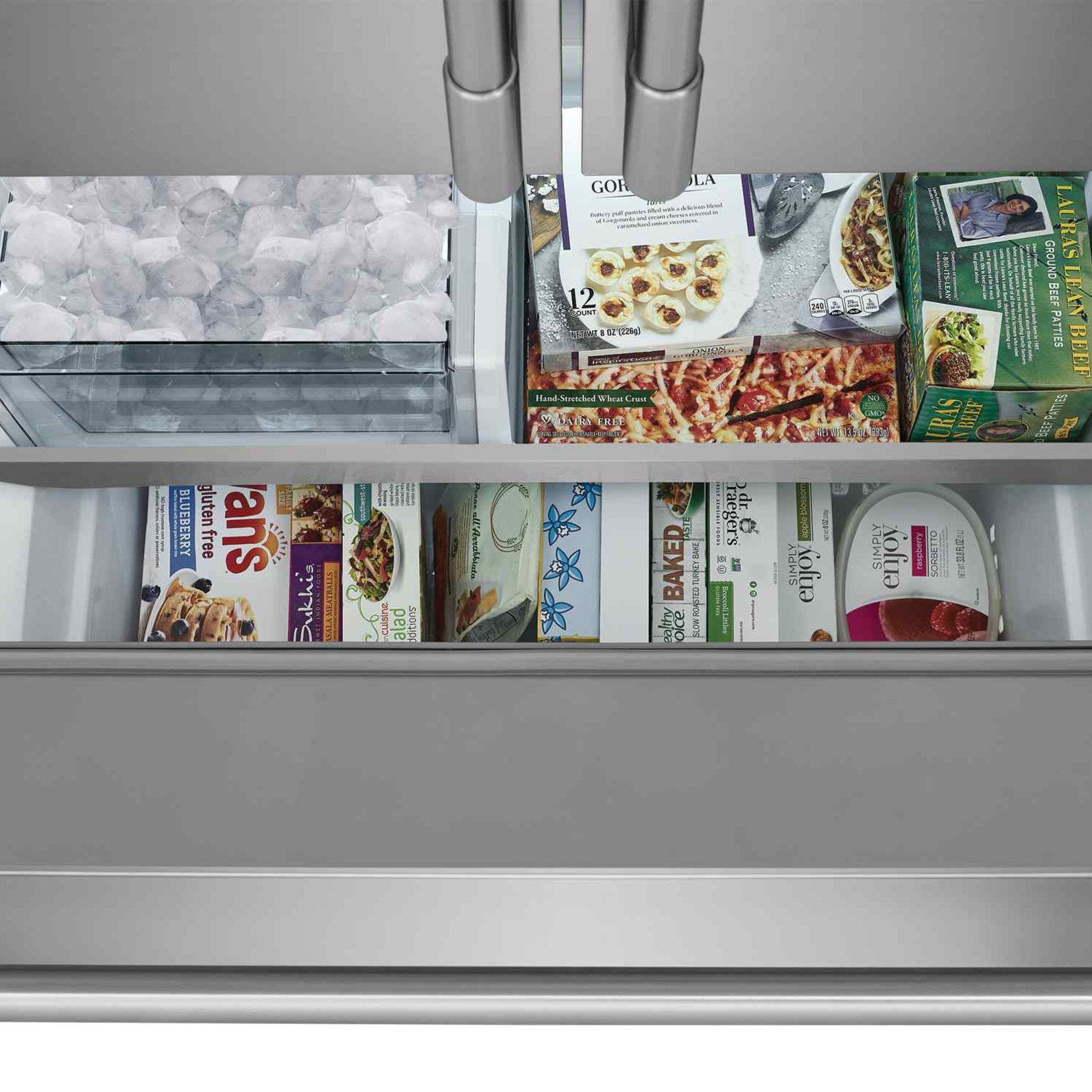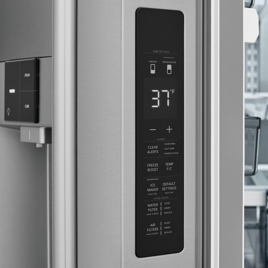 Réfrigérateur à portes françaises , 36 po. de largeur, Certifié ENERGY STAR, 27.8 pi. pi. cu., Distributeur de glaçons dans la porte, Distributeur d'eau extérieur, Éclairage DEL