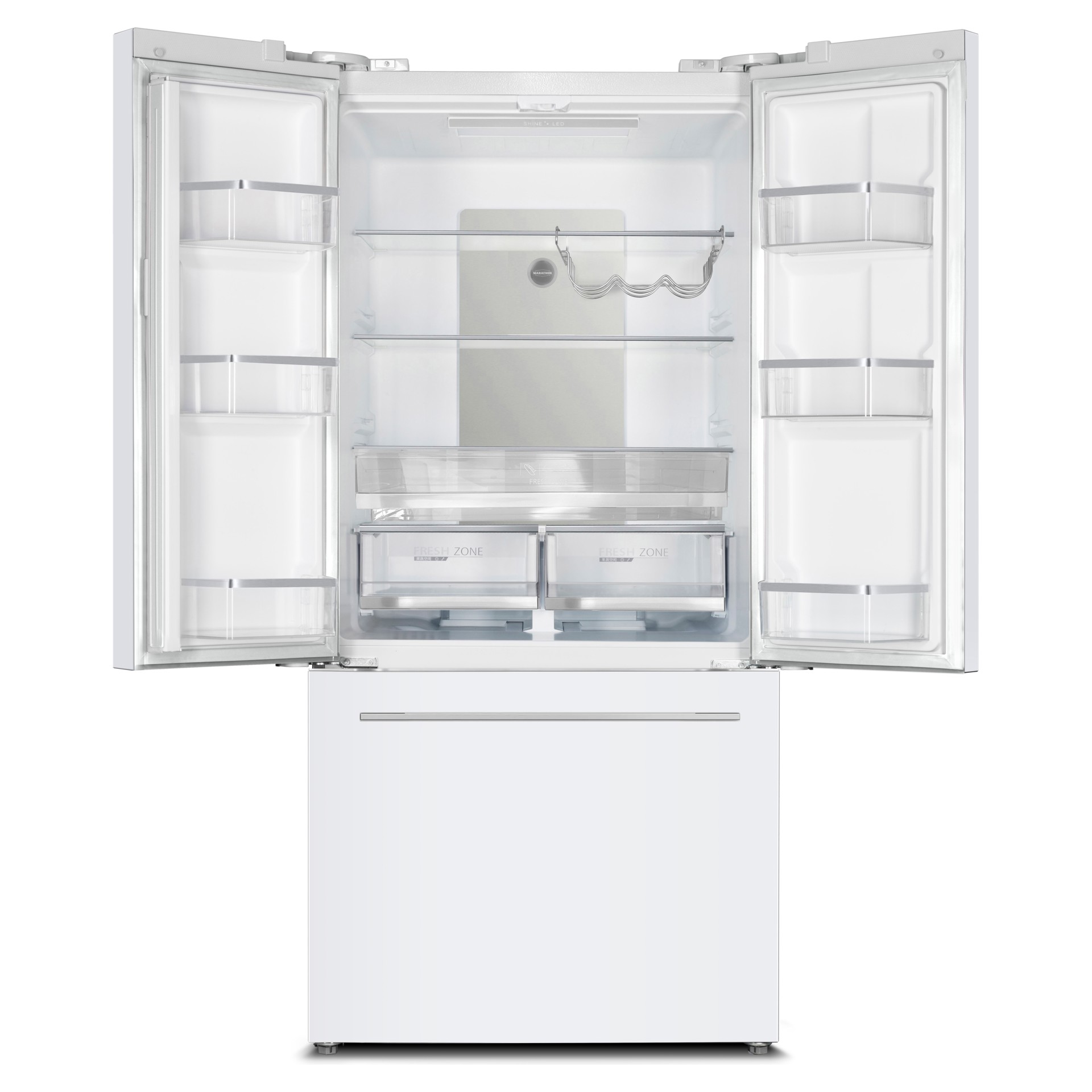 Voici le réfrigérateur à portes françaises Marathon de 20.8 pi3 où style et fonctionnalité s'associent harmonieusement. Équipé d'un compresseur Inverter performant et silencieux, ce réfrigérateur certifié EnergyStar assure un refroidissement uniforme et maintient une fraîcheur optimale grâce à son fonctionnement sans givre multi-flux d'air.