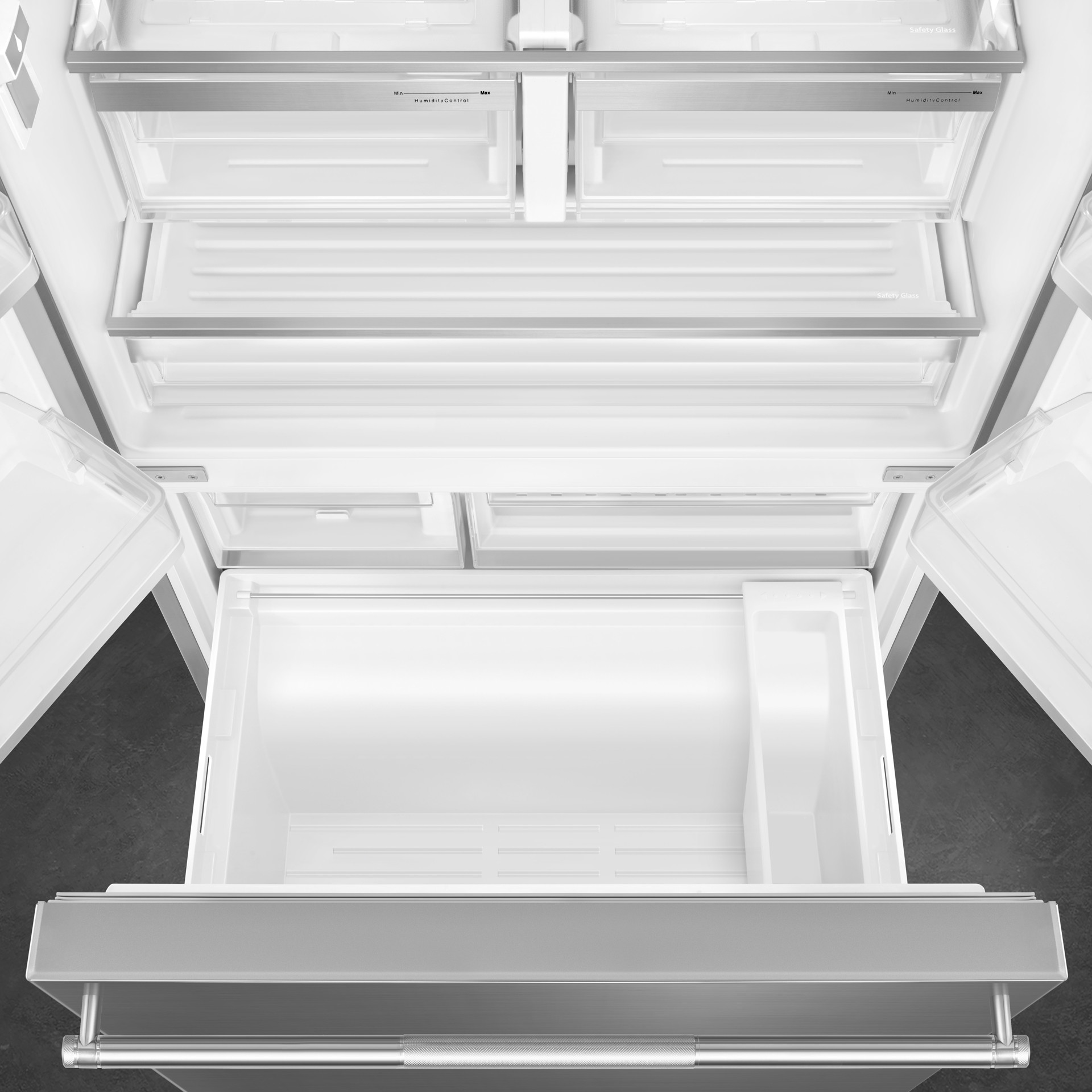 Le réfrigérateur à portes françaises Smeg offre un design élégant et moderne. Il comprend une machine à glaçons et un distributeur d’eau pratiques, ce qui vous permet d’avoir toujours de la glace et de l’eau fraîches à portée de main. Ce réfrigérateur allie style et fonctionnalité, ce qui en fait un choix idéal pour toute cuisine contemporaine
