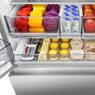 Les bacs de porte réglables vous permettent de stocker une variété de contenants, y compris les cruchons d’un gallon, et libèrent un espace précieux sur les tablettes.