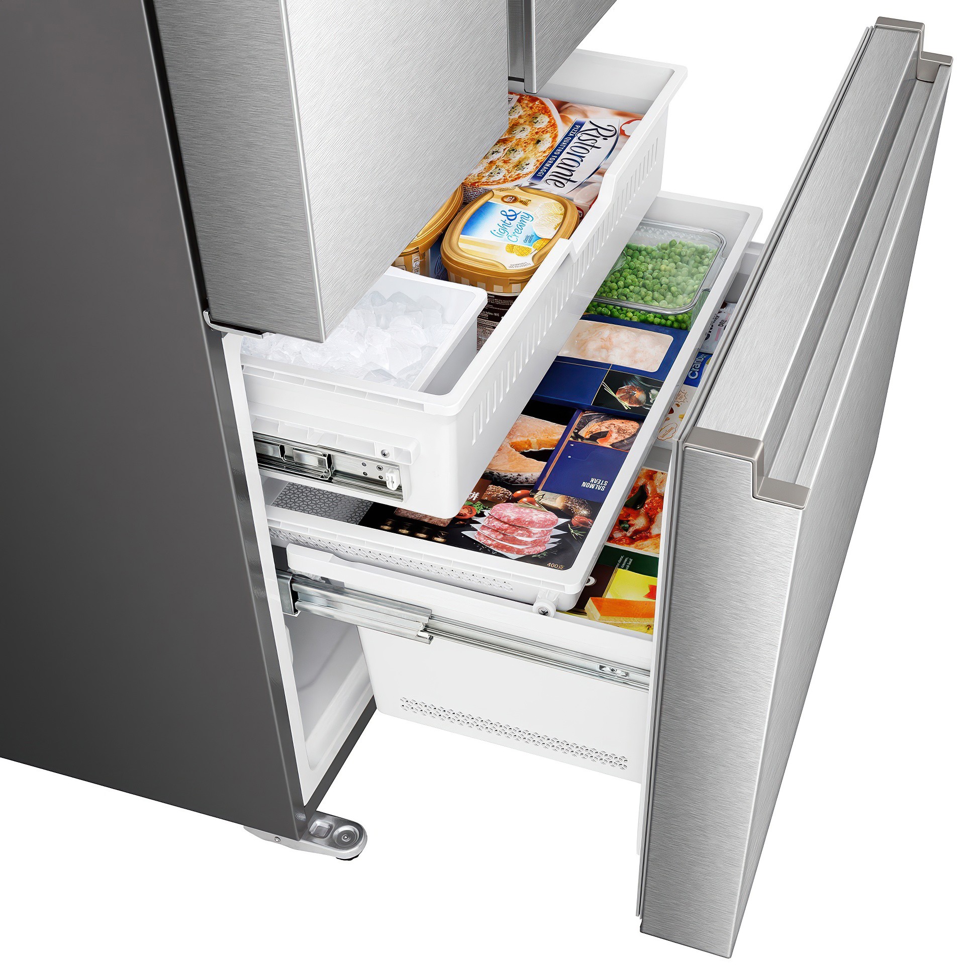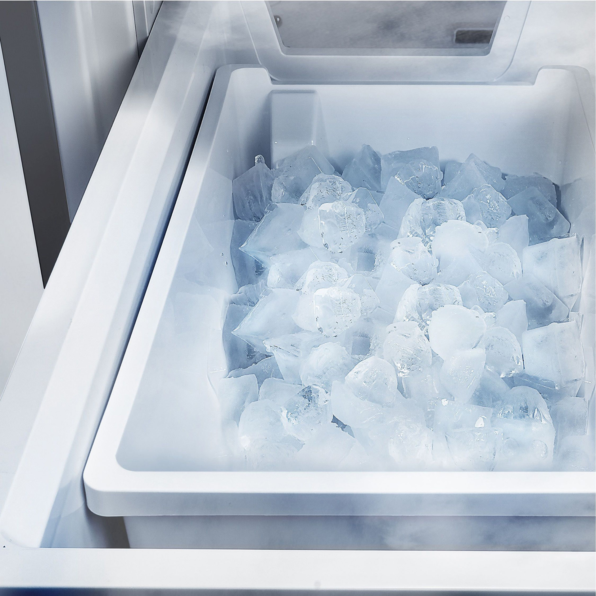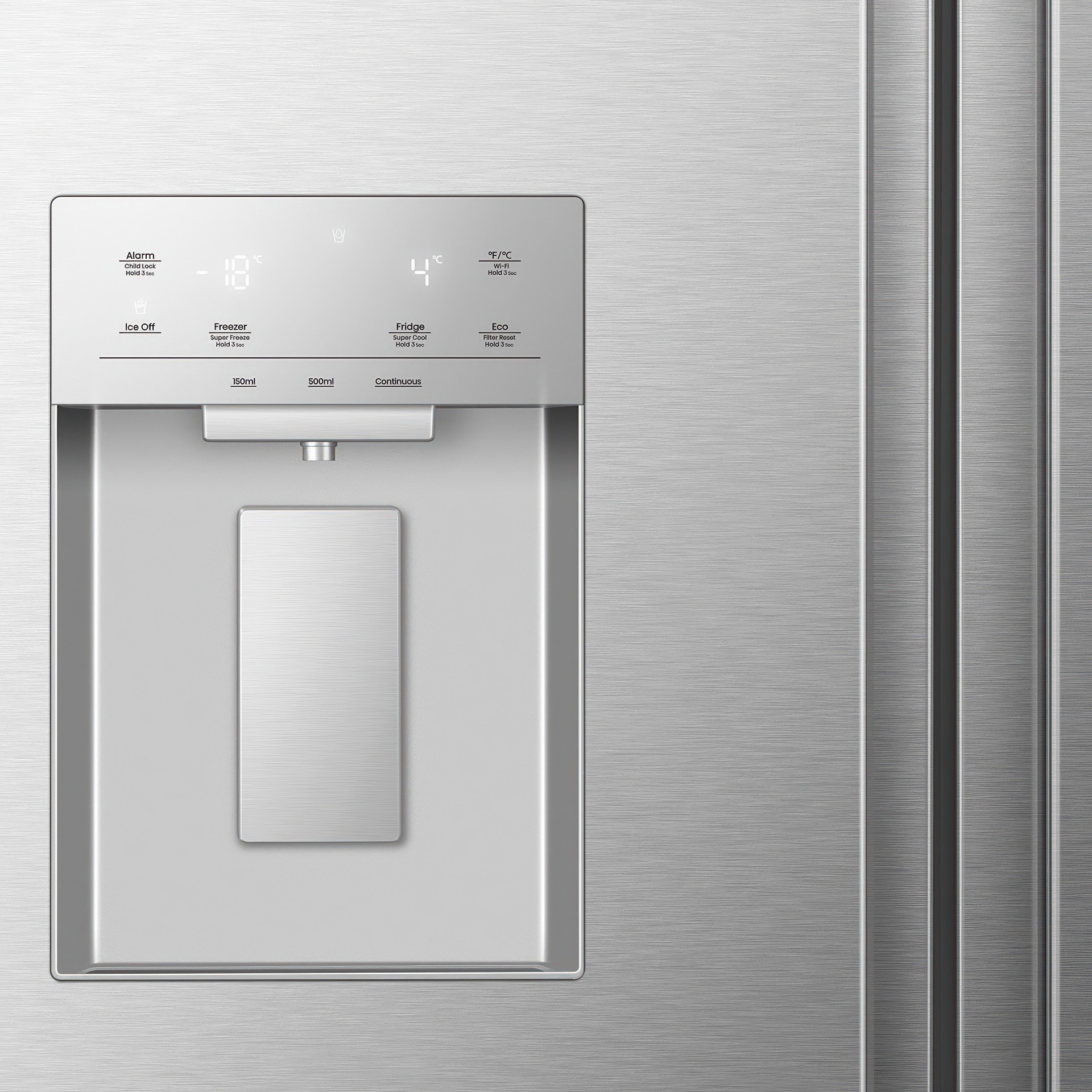Le distributeur d’eau filtrée extérieur vous permet de doser 150 ou 500 ml d’eau ou de remplir de grandes casseroles grâce à la fonction de distribution continue – sans oublier la machine à glaçons automatique dans le congélateur.