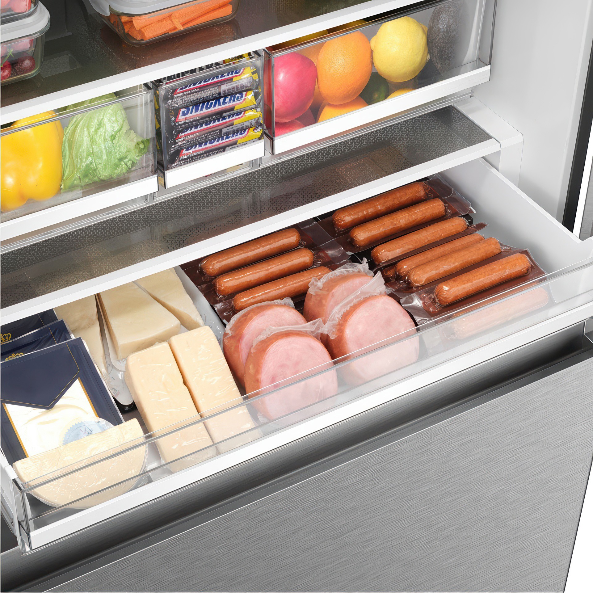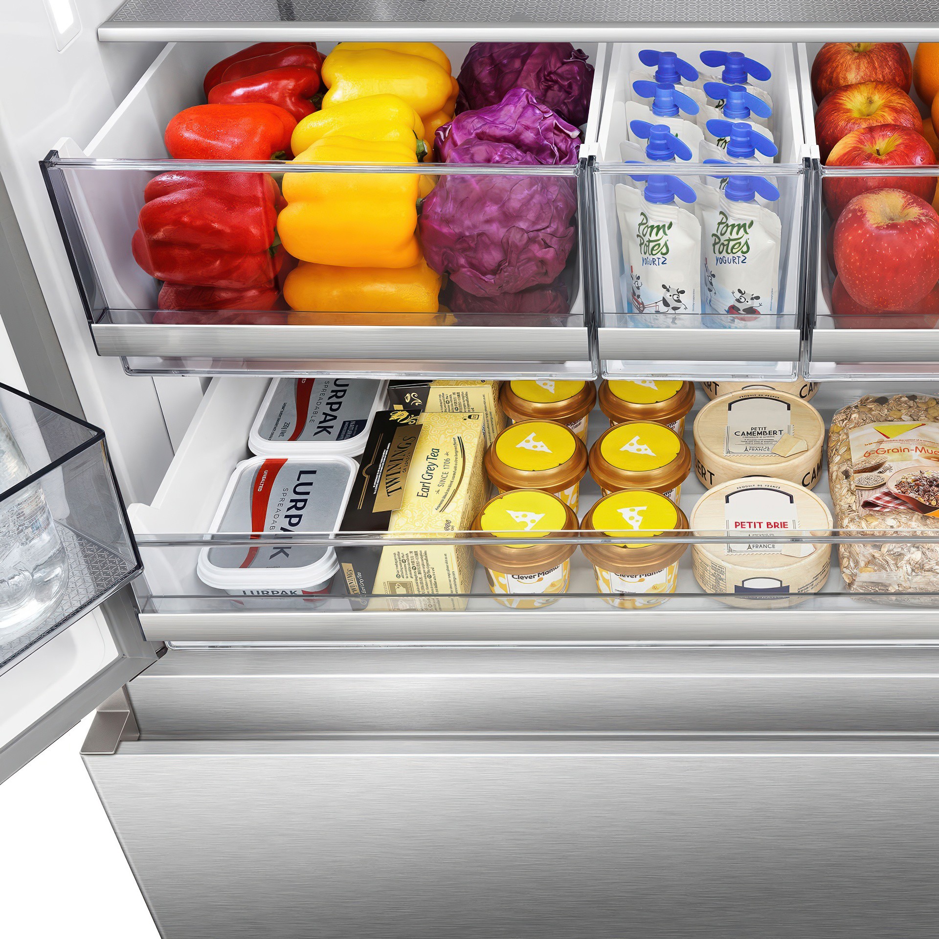 Grâce à un compresseur à inverseur, votre nouveau réfrigérateur sera très silencieux et maintiendra une température encore plus constante – plus la température est stable, plus les aliments durent longtemps.