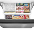 Rangez et accédez facilement aux articles plus volumineux tels que les plateaux de réception, la charcuterie et les fromages grâce au tiroir de garde-manger coulissant pleine largeur. Il offre un accès facile et un grand espace, garantissant que les aliments plus volumineux restent organisés et à portée de main sans entraver le bon ordre des autres articles de votre réfrigérateur.