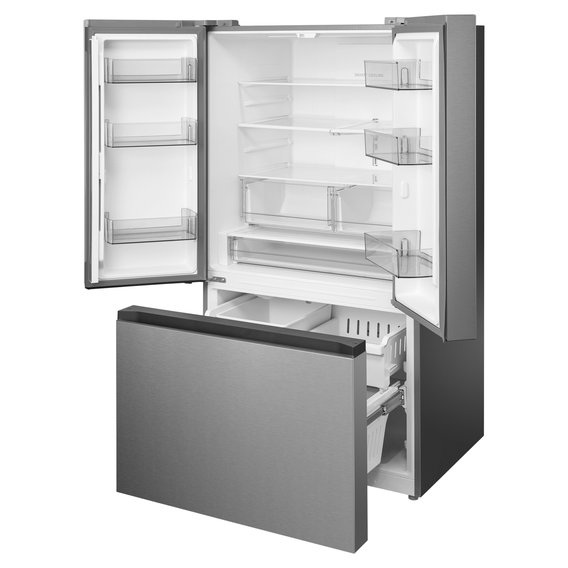 Obtenez la flexibilité dont vous avez besoin pour organiser vos aliments avec 1 tablette en verre pleine largeur, 2 tablettes en verre réglables en demi-largeur, 6 bacs de porte de la taille d'un gallon et 2 tiroirs de congélation spacieux.