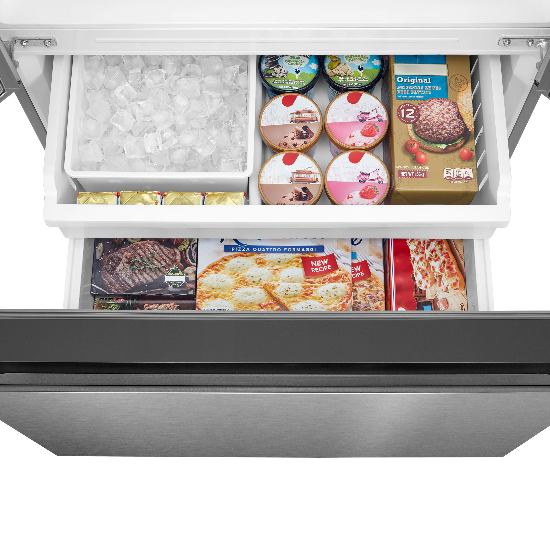 Ne vous inquiétez plus jamais de manquer de glace. La machine à glaçons automatique intégrée au congélateur assure un approvisionnement régulier en glaçons frais, prêts à consommer dès que vous en avez besoin.
