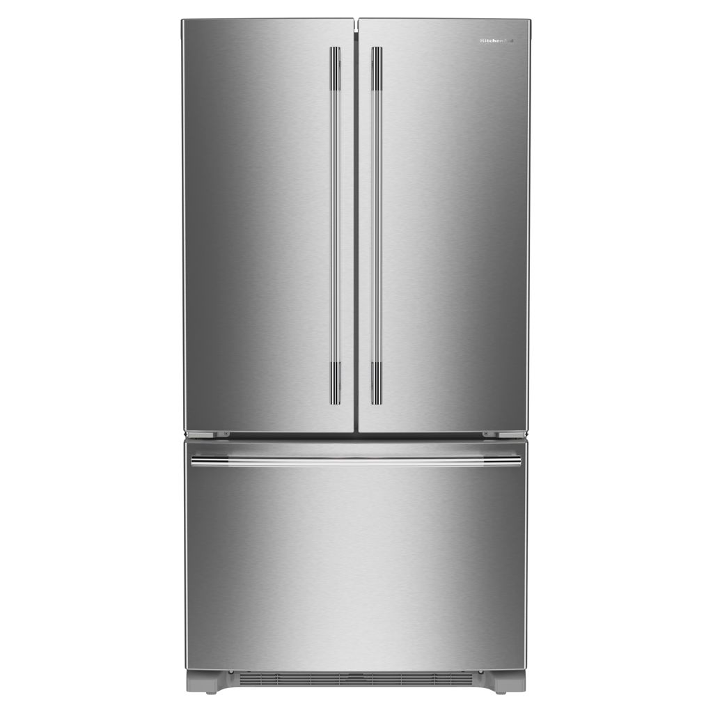 Ce réfrigérateur à portes françaises et profondeur de comptoir KitchenAid® est doté d'un distributeur d'eau intérieur pour garder un élégant extérieur.