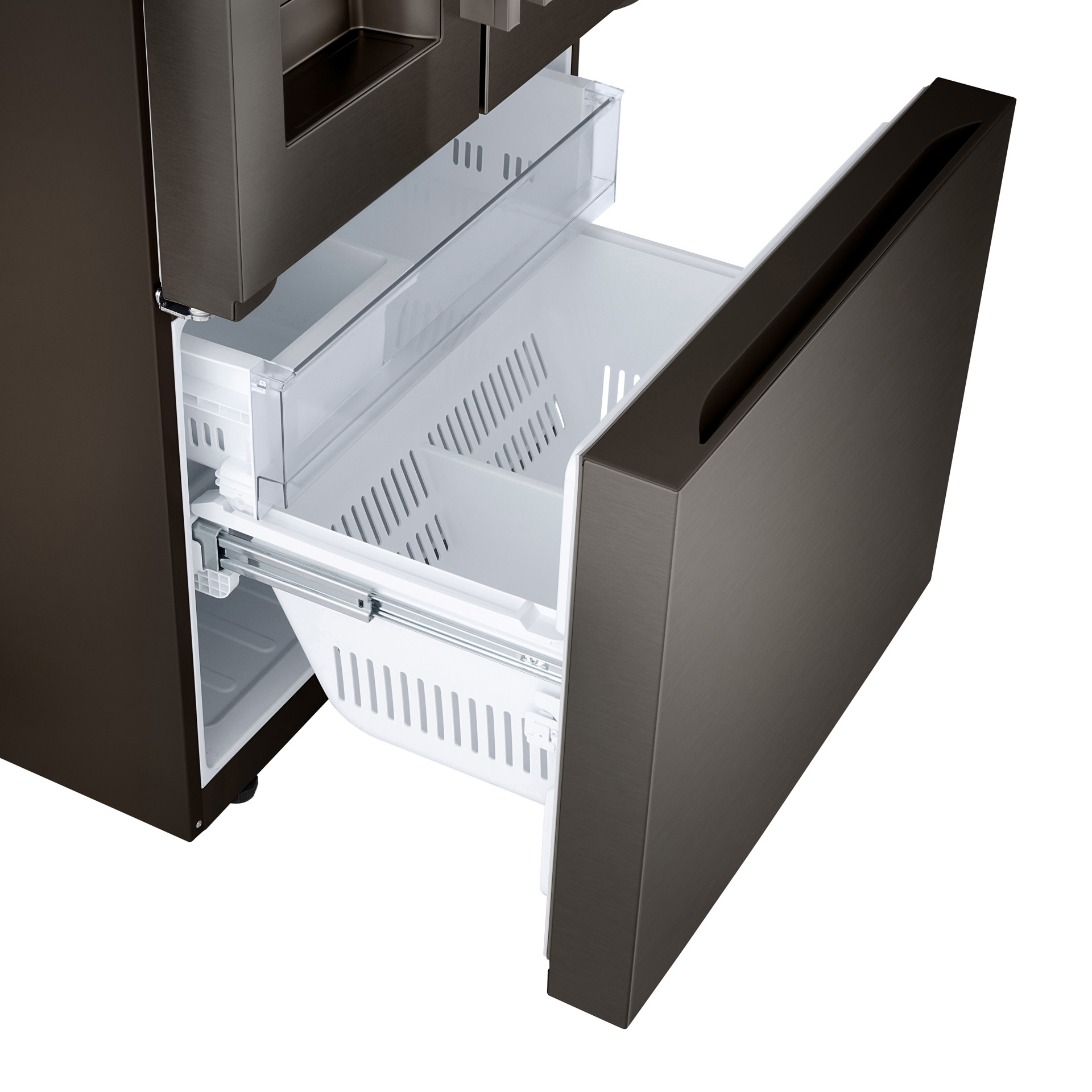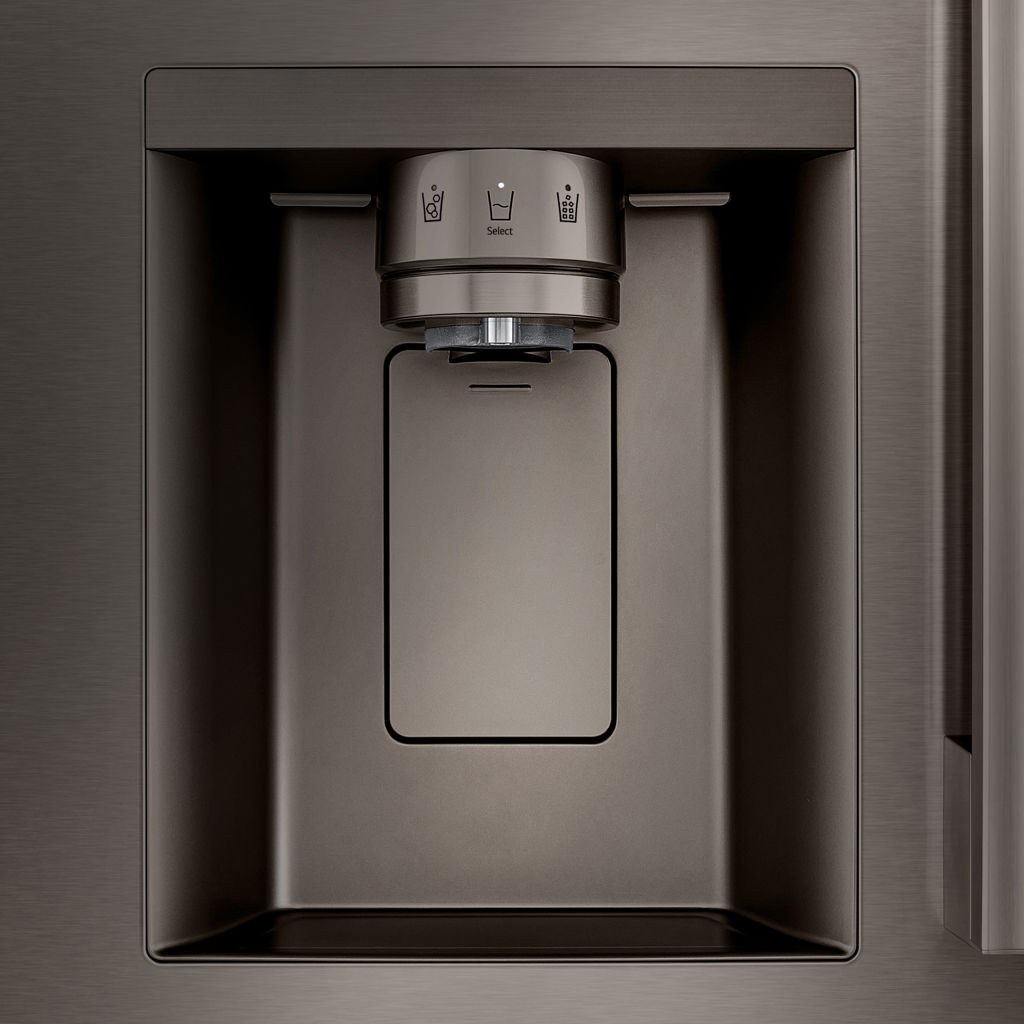Des pichets aux pintes, enfin un distributeur d'eau et de glaçons qui s'adapte à presque tous les contenants. Le distributeur d'eau et de glaçons de ce réfrigérateur à portes françaises LG est l'un des plus hauts du marché, avec ses 32 cm de hauteur.