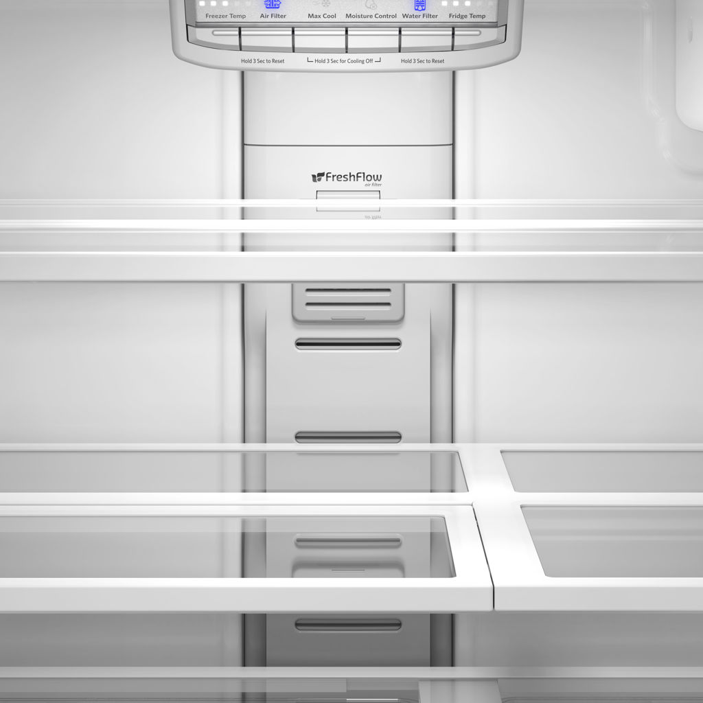 La finition PrintShield® résiste aux empreintes digitales extérieures tandis que le style French Door offre une organisation flexible à l’intérieur.