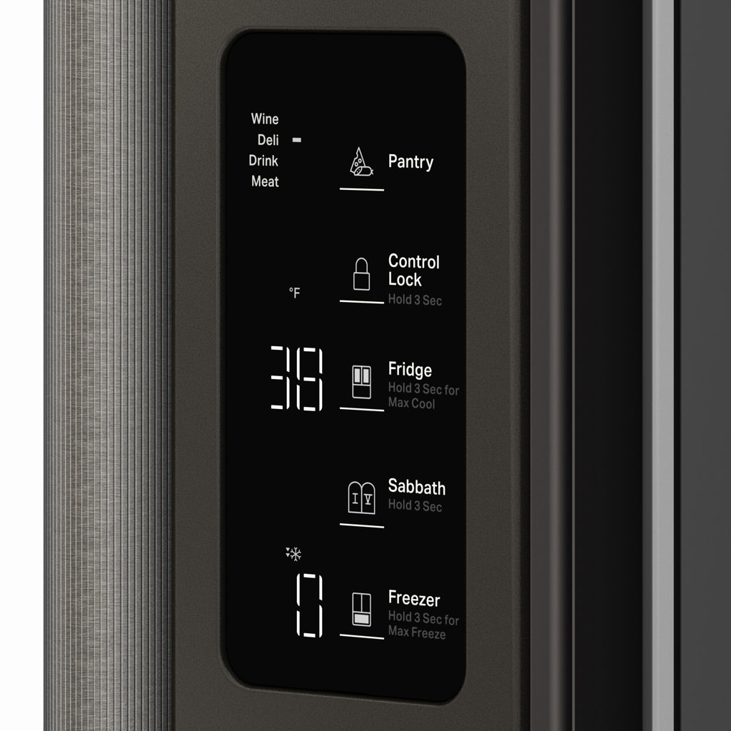 Permet d'abaisser la température du congélateur jusqu'au niveau le plus froid (-8 °F) d'une simple pression sur un bouton, pour que les aliments congelés atteignent une température optimale. Après 48 heures, la température revient automatiquement à son réglage précédent.