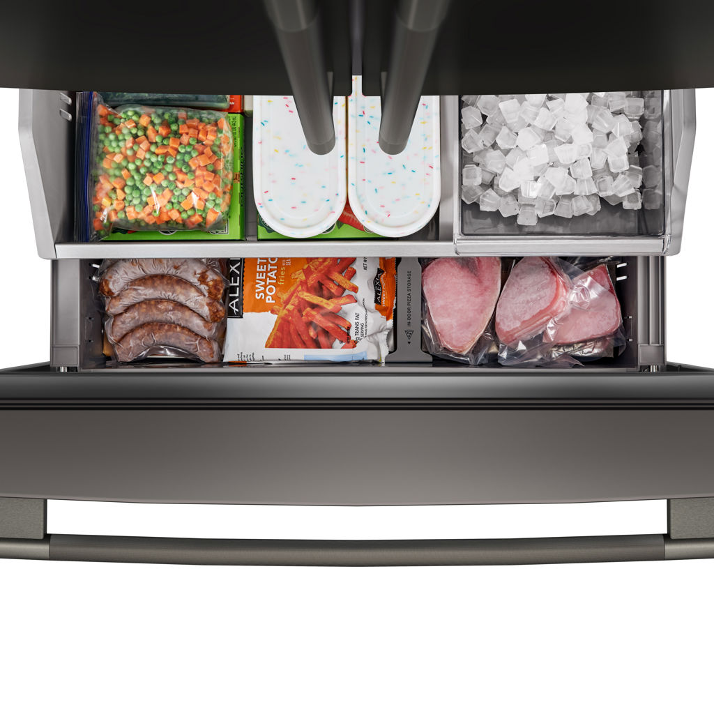 Ce réfrigérateur permet de ranger les aliments surgelés de façon pratique et de les retrouver facilement. Un séparateur de rangement ajustable dans le tiroir inférieur, un compartiment à pizza et une étagère pour les articles plats empêchent les petits articles de se perdre sous les plus grands.