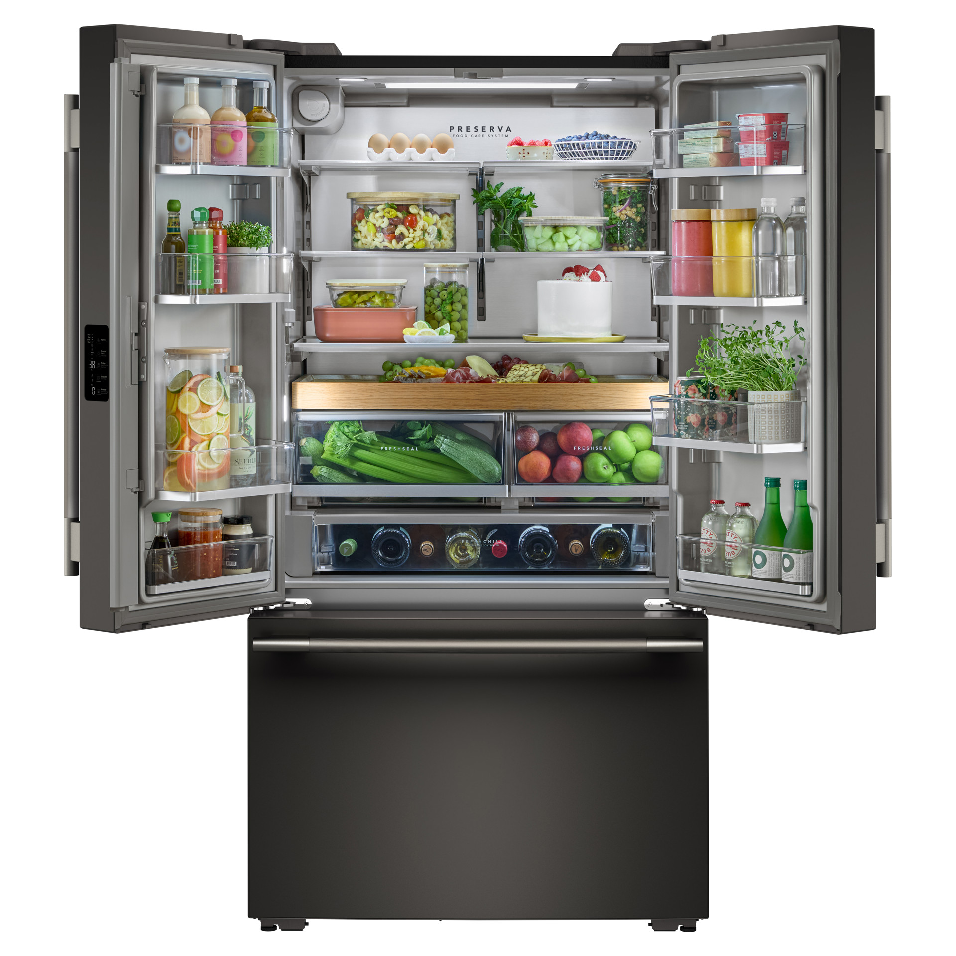 Il est facile de personnaliser les températures de conservation pour différents types d'ingrédients, ce qui contribue à préserver leur fraîcheur. Il suffit de sélectionner les températures prédéfinies pour le vin, la charcuterie, les boissons et la viande.