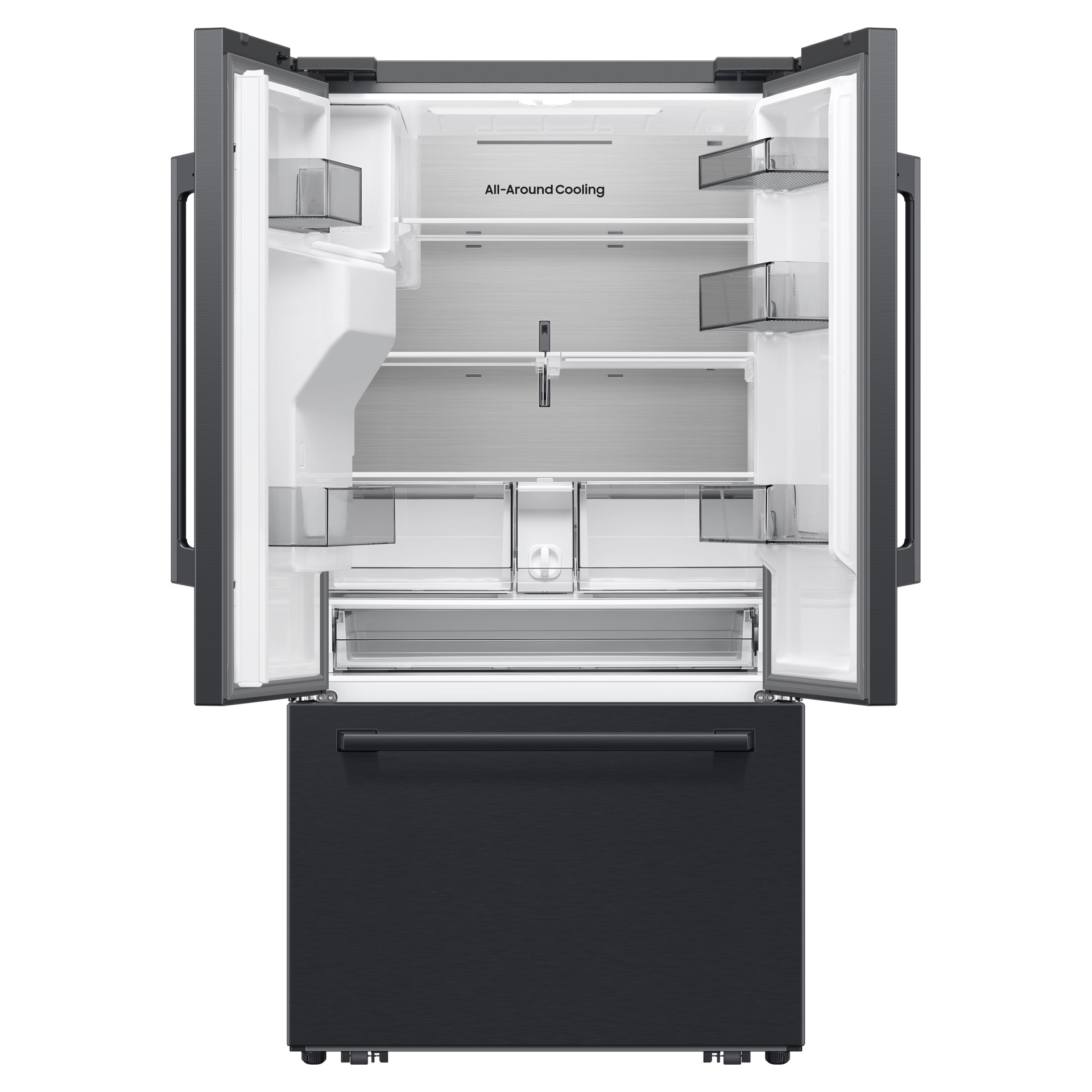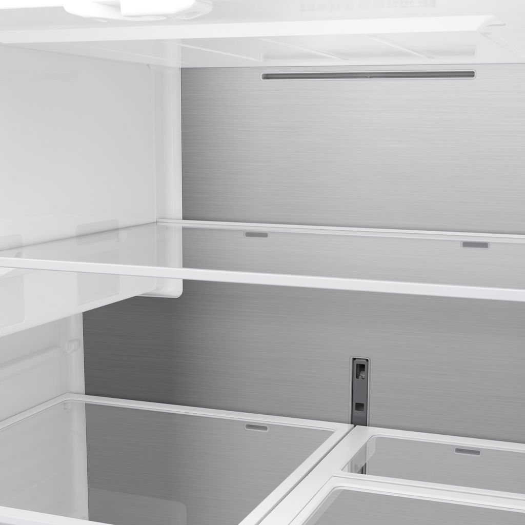 Le compartiment réfrigérateur offre environ 19,8 pi³ d’espace avec plusieurs tablettes en verre trempé résistantes aux éclaboussures, un tiroir pleine largeur et deux tiroirs transparents pour les fruits et légumes. Les balconnets de porte facilitent le rangement des contenants volumineux, dont un balconnet pour gallon. Le congélateur propose quant à lui une capacité d’environ 8,7 pi³ avec éclairage DEL pour une visibilité optimale.