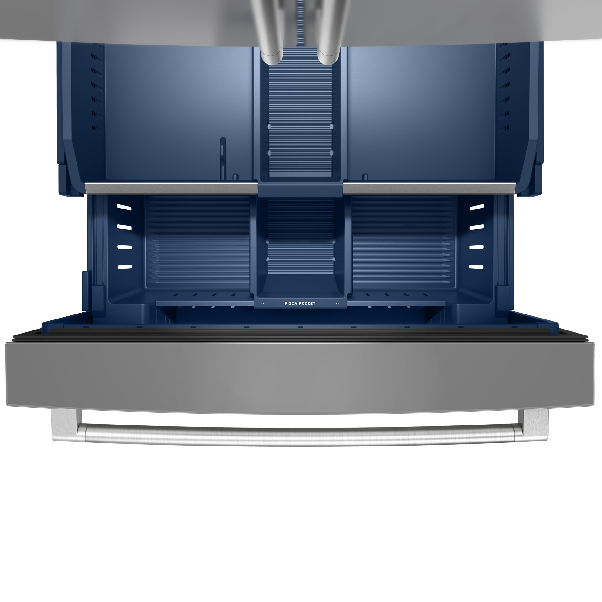 Le tiroir à charcuterie Wide-N-Fresh™ à température contrôlée est idéal pour ranger plateaux de charcuterie et autres mets. Côté durabilité, ce réfrigérateur à portes françaises est doté de poignées robustes en acier inoxydable
