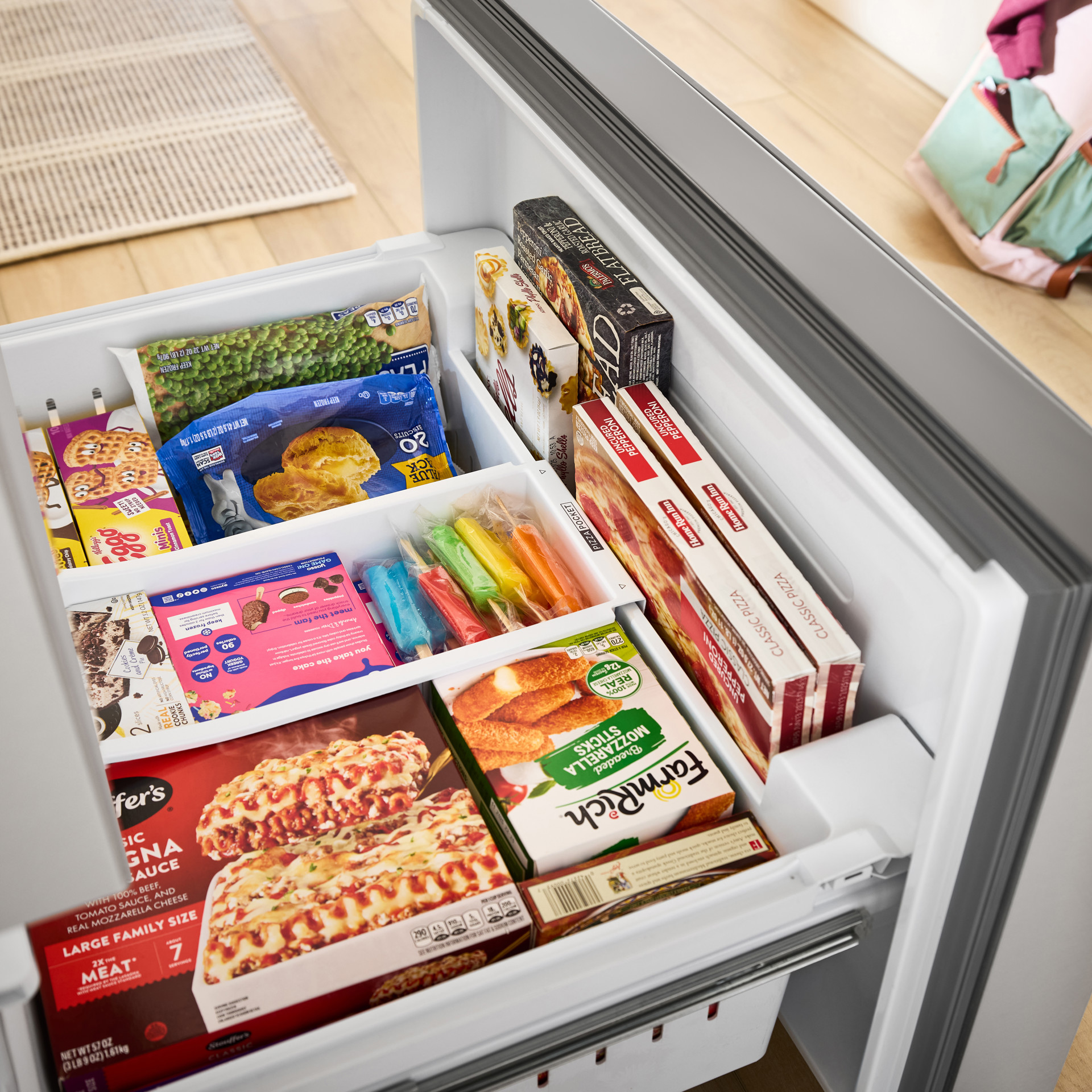 Utilisez la fonction de congélation rapide Fast Freeze pour maintenir au froid les pizzas surgelées et les crèmes glacées que vous venez d'acheter. Le réglage intégré met le congélateur à sa température la plus basse pendant 2 heures à la simple pression d'un bouton.