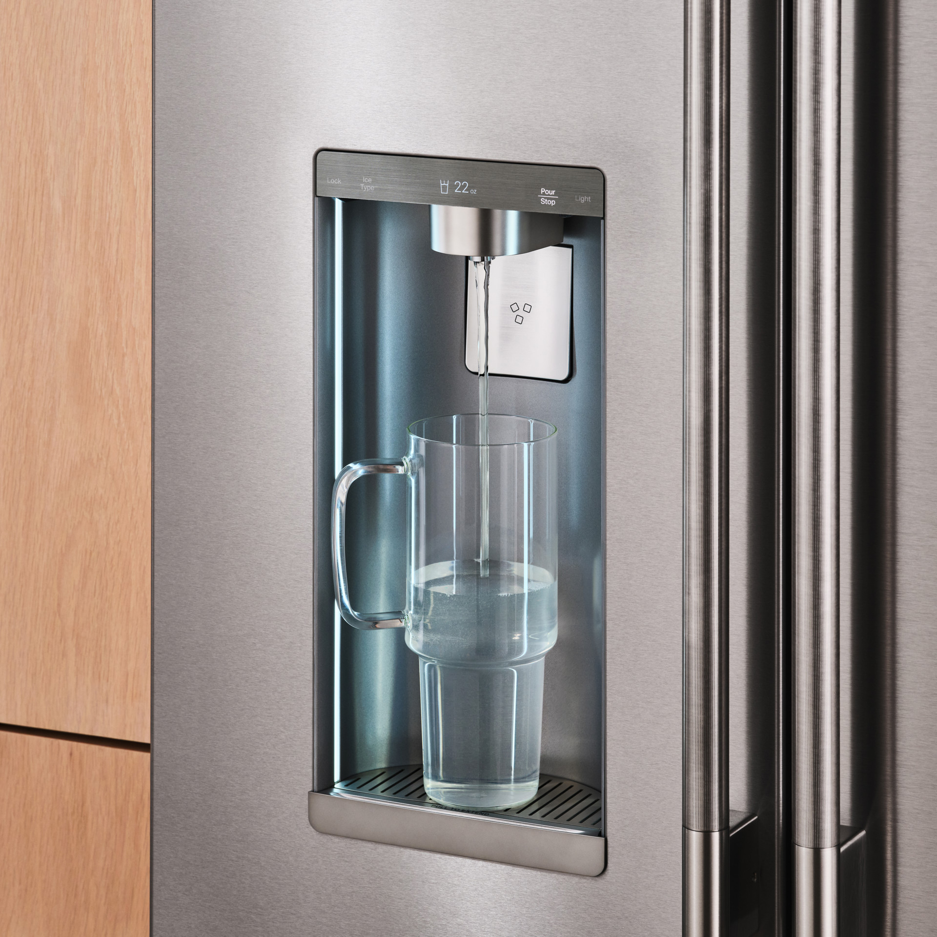 Garde les boissons jusqu’à 5 °F plus froides que le reste de votre réfrigérateur sans les congeler complètement. Gardez votre eau pétillante et vos jus fraîchement pressés au frais et prêts à être servis à vos invités ou à être dégustés par vous-même à tout moment.