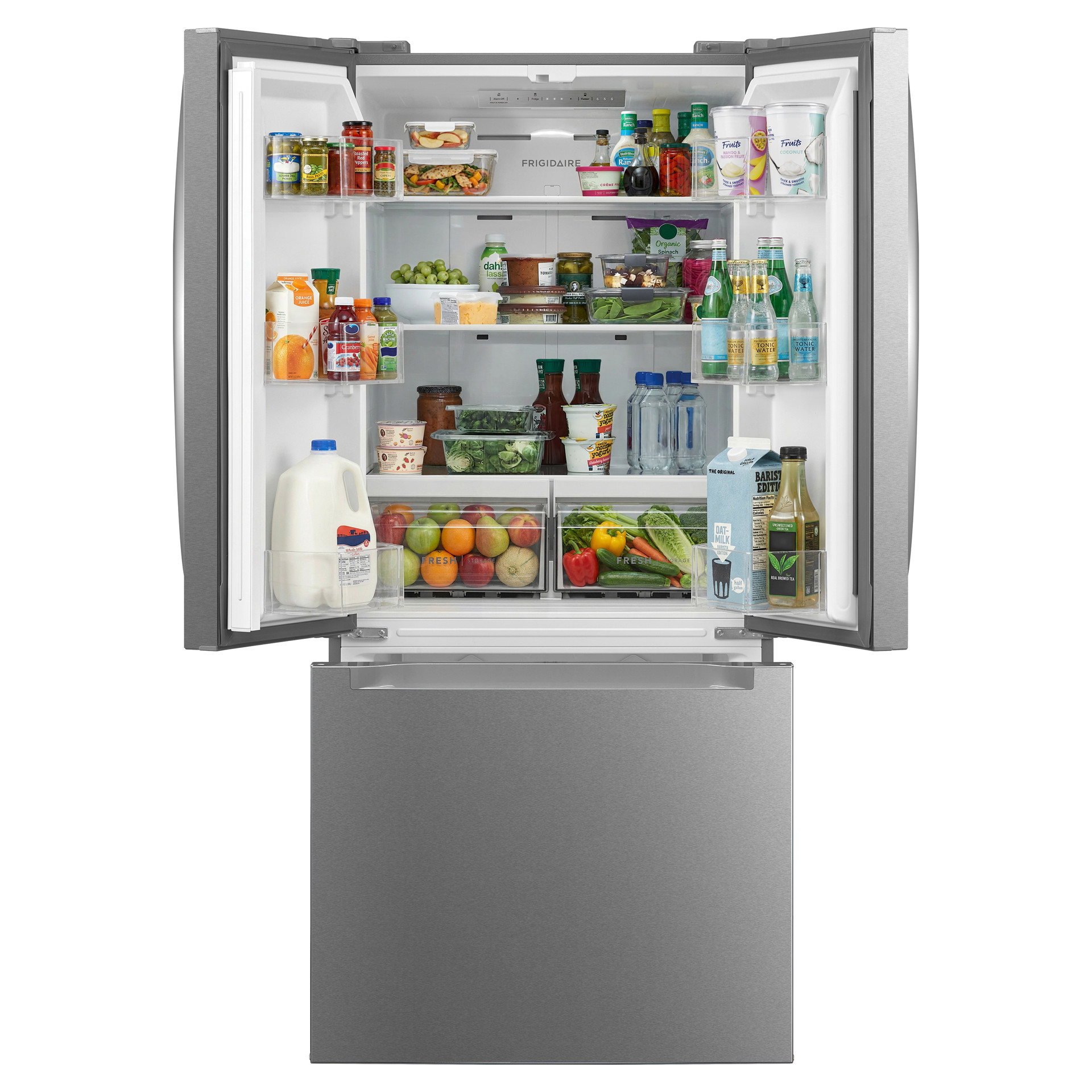 Trouvez une place pour chaque chose grâce à nos solutions de rangement flexibles conçues pour optimiser chaque centimètre carré disponible dans votre réfrigérateur, notamment des étagères en verre réglables sur toute la largeur et de multiples bacs de porte.