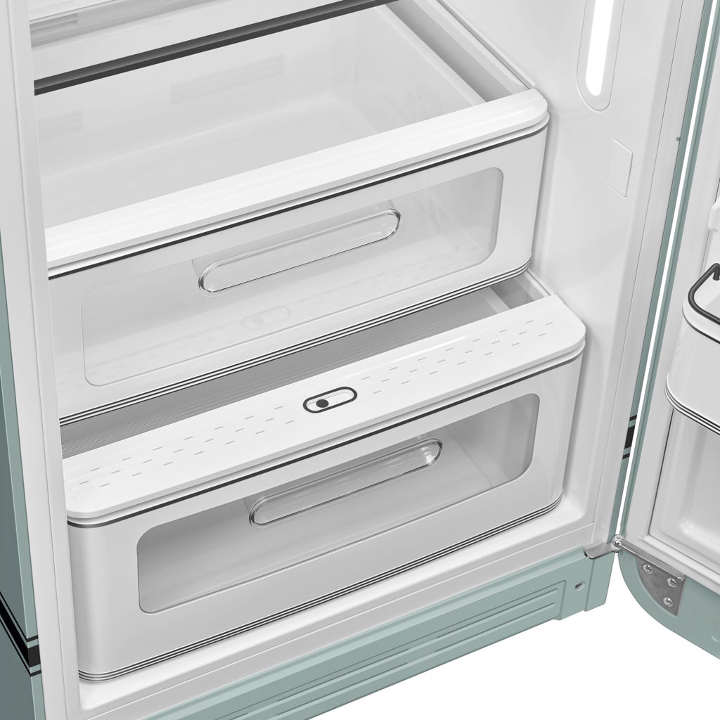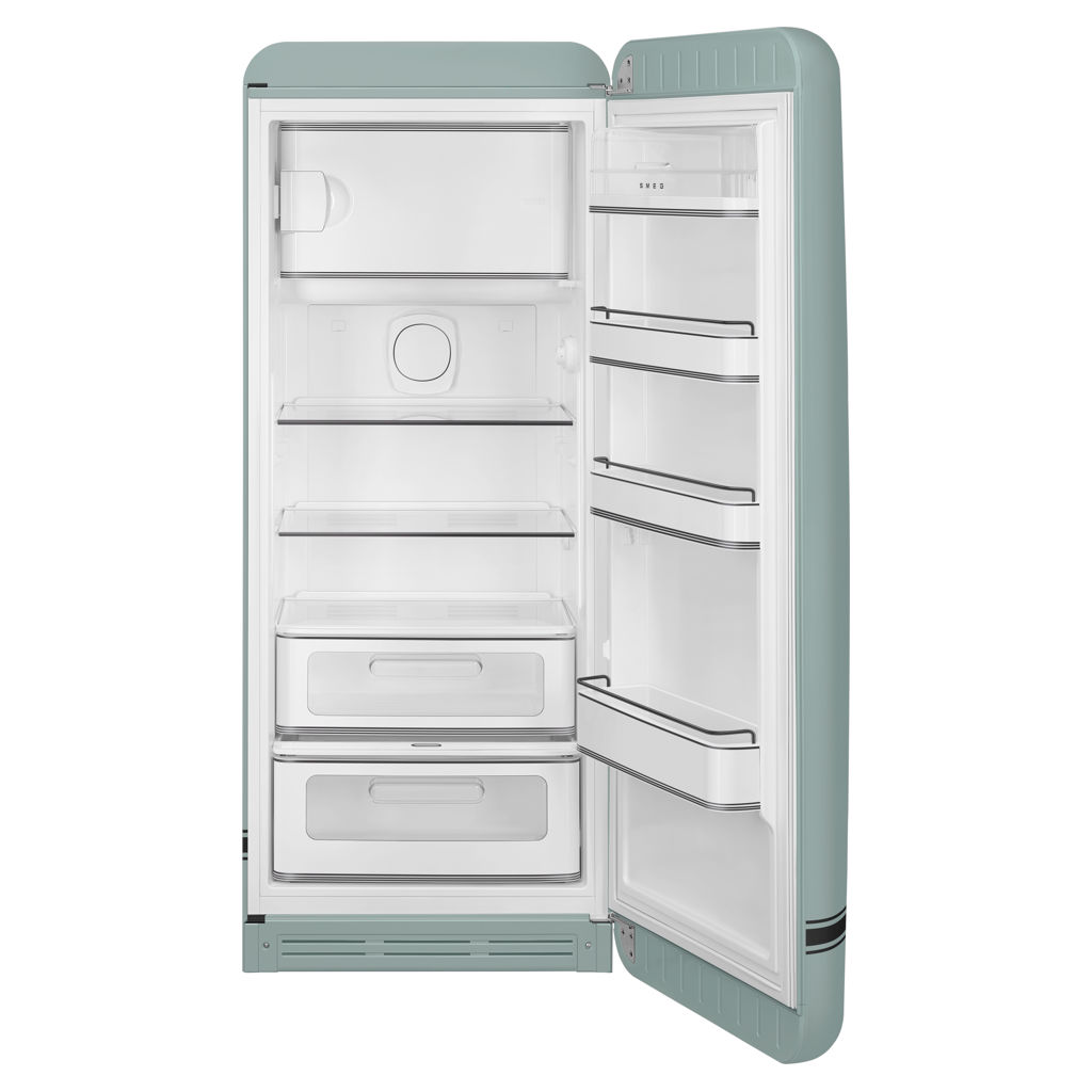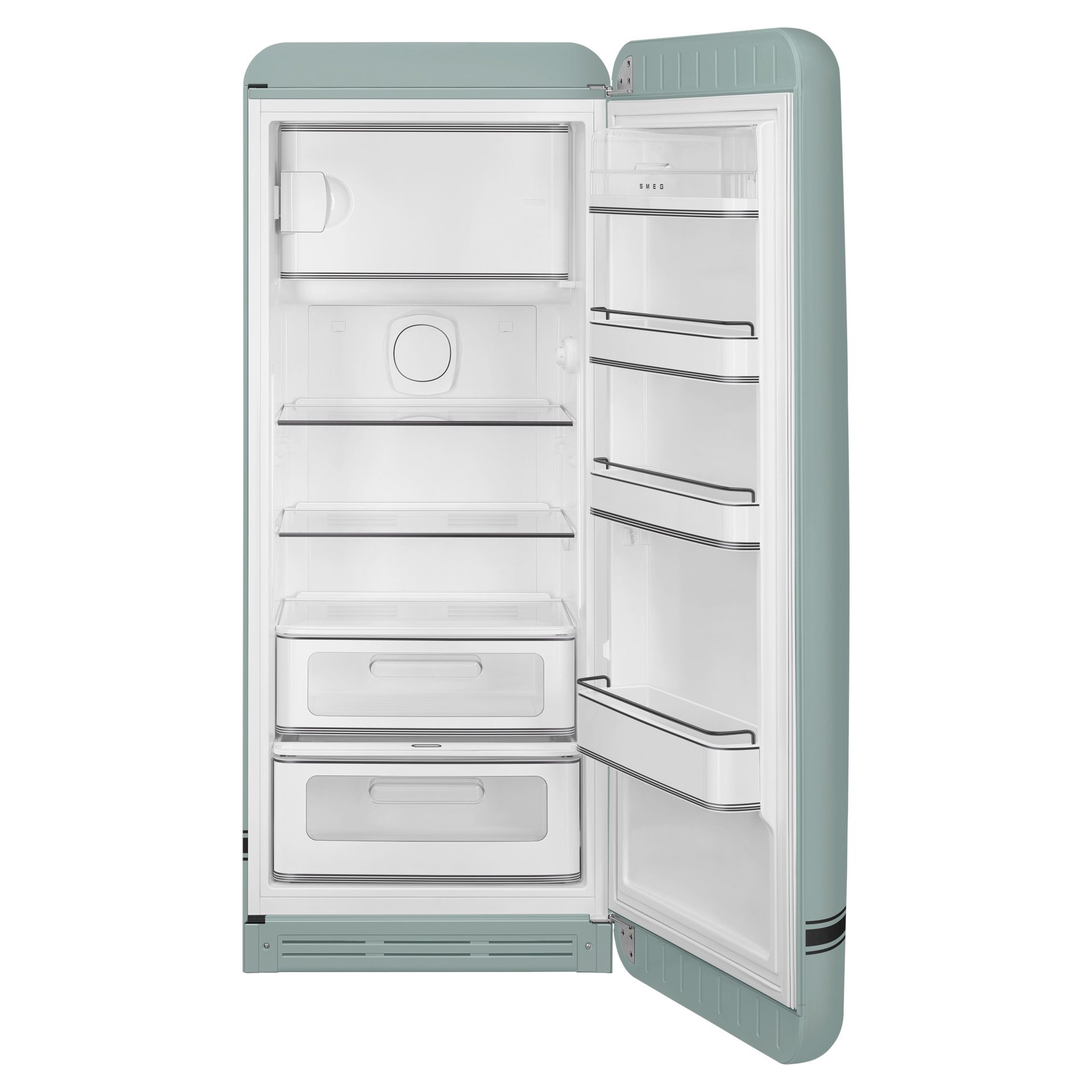 Le réfrigérateur Porsche x SMEG en vert ombre est un réfrigérateur de 270 litres avec un congélateur de 26 litres.