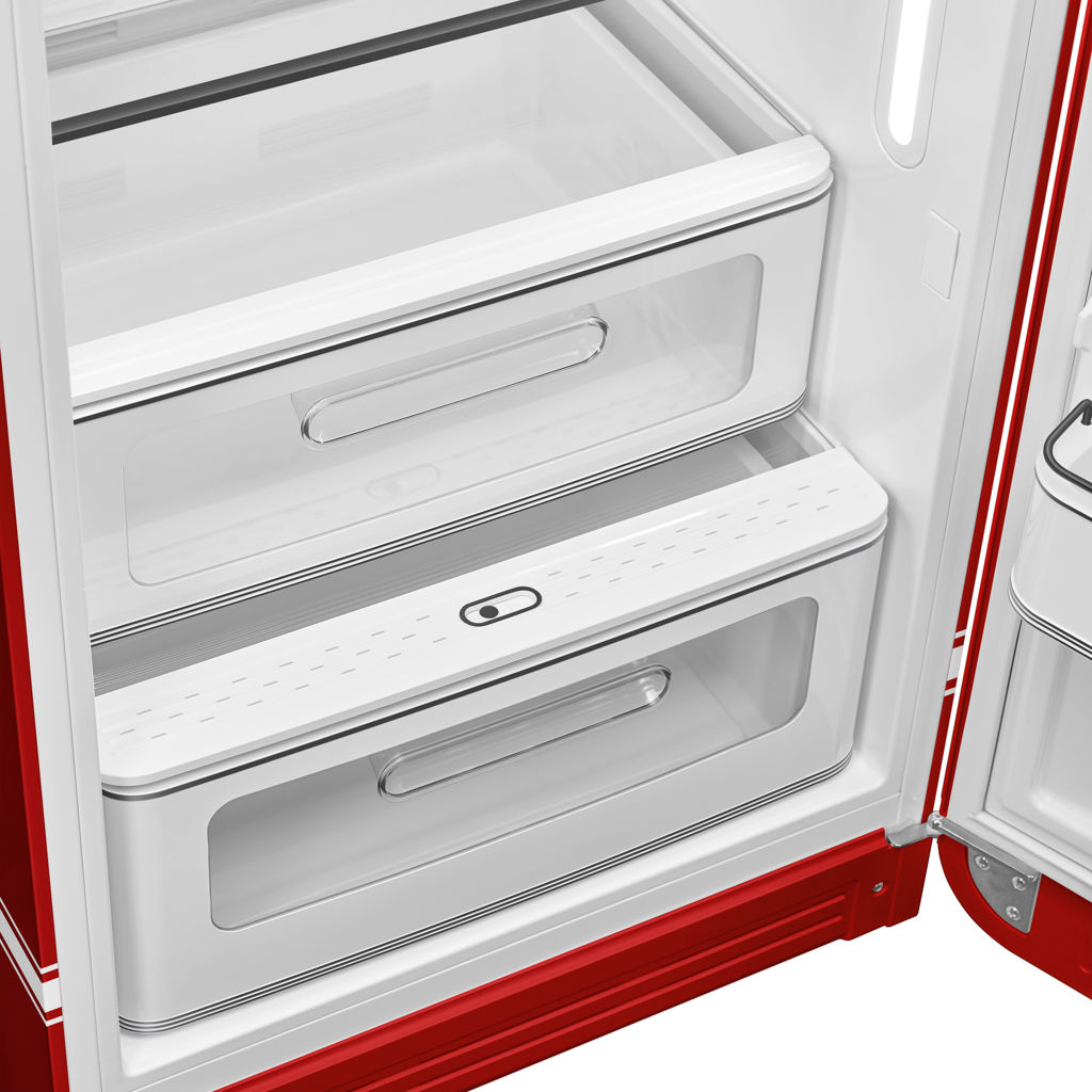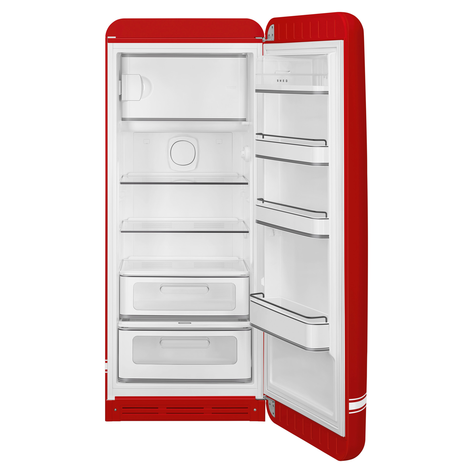 Le réfrigérateur Porsche x SMEG en rouge est un réfrigérateur de 270 litres avec un congélateur de 26 litres.